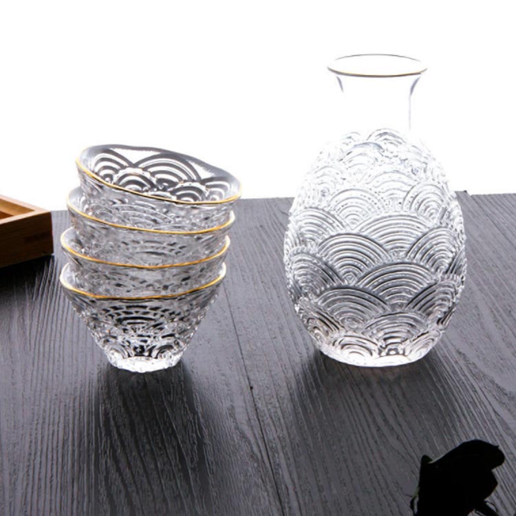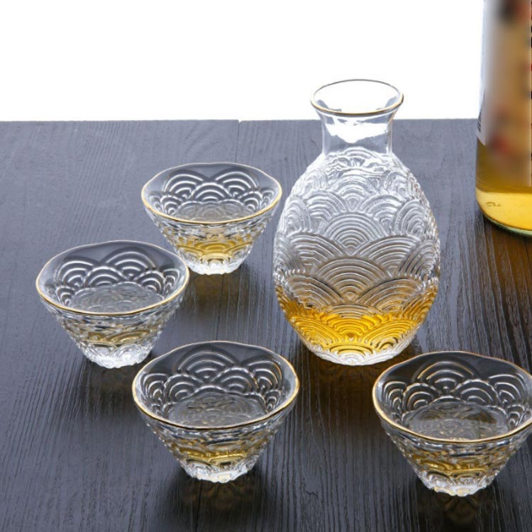 ぐい呑み おちょこ 波模様 ガラス 6 ゴールドライン付き ゴールドラインなし