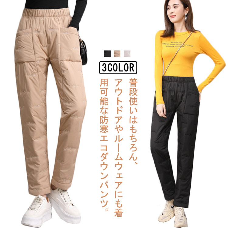 エコダウンパンツ リラックス 秋 ルー レディースファッション 新登場! ホワイト ベージュ ブラック M L XL 2XL 3XL