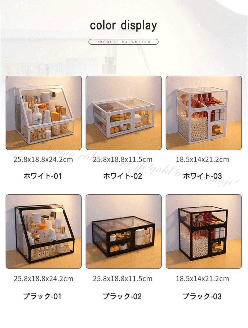 メイクボックス 組立不要 化粧品 収納 ホワイト ブラック 01 02 03