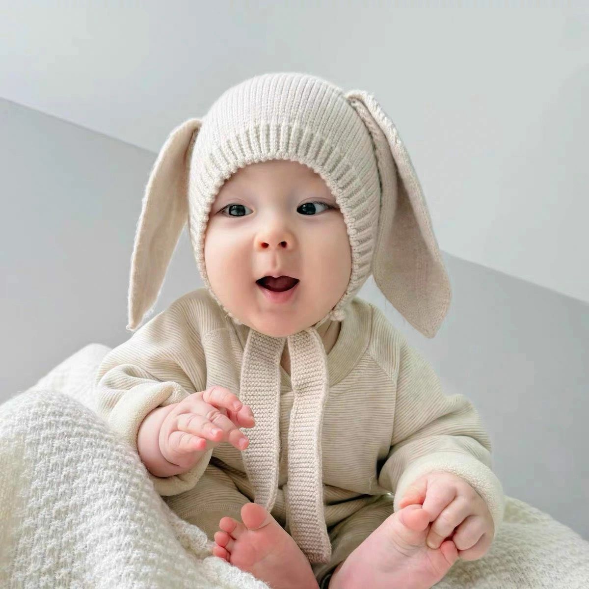 かわいい ベビー ニットボンネット 耳付きボンネット ベビー帽 新生児 ニューボーンフォト ニット 出産祝い 赤ちゃん ニッ 帽子