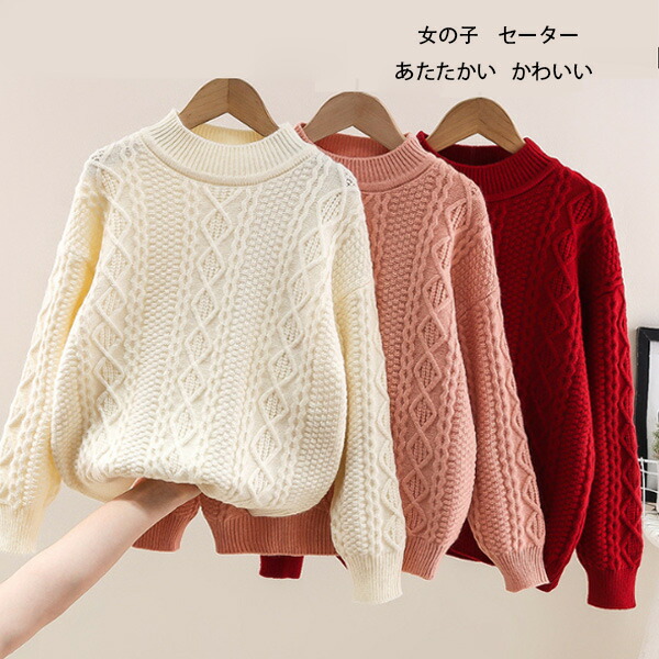 韓国子供服 あたたかい セーター 女の キッズ トップス セーター 新登場! ピンク アンズホワイト レッド 110 120 130 140 150 160