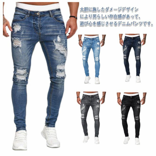 ダメージジーンズ メンズ スキニーパン ズボン パンツ 続々登場 ブルー ライトブルー ネイビー グレー ブラック S M L XL 2XL 3XL 4XL