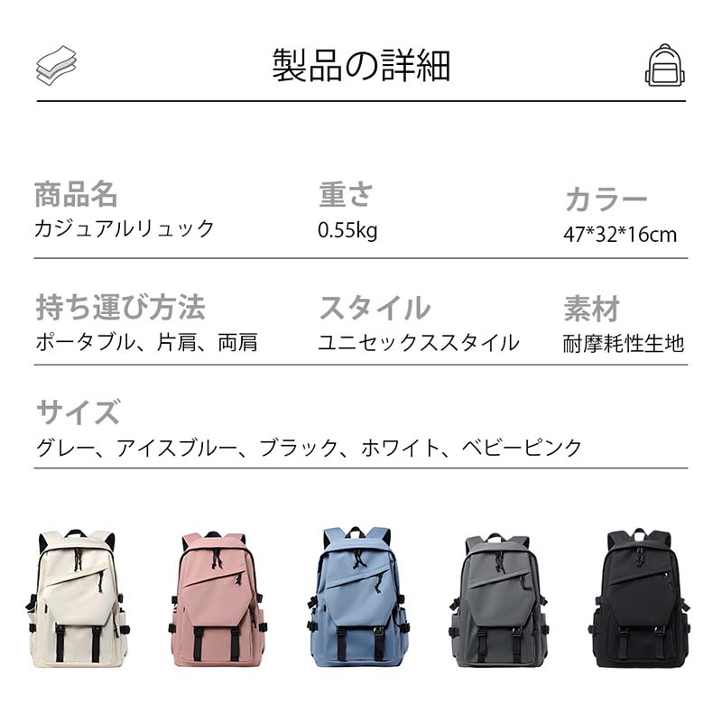 大容量 軽く感じる ビジネス リュック バッグ メンズバッグ バックパック リュック 続々入荷中 アイスブルー グレー ブラック ベビーピンク ホワイト