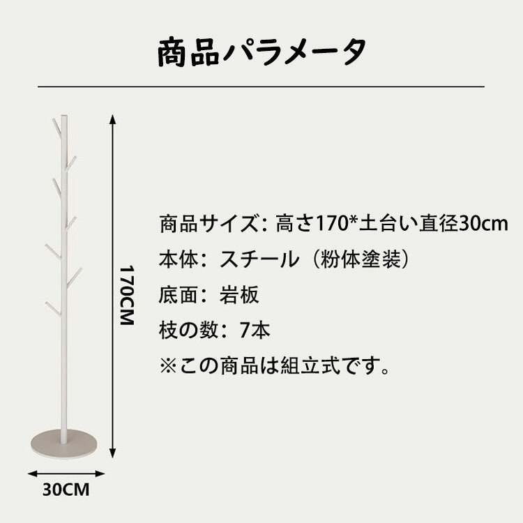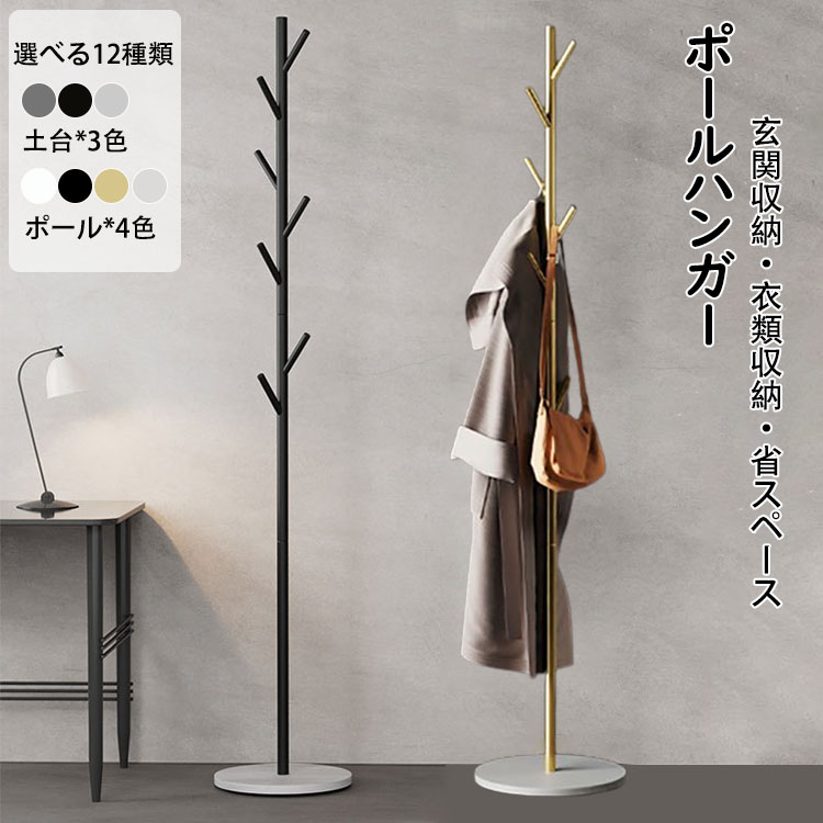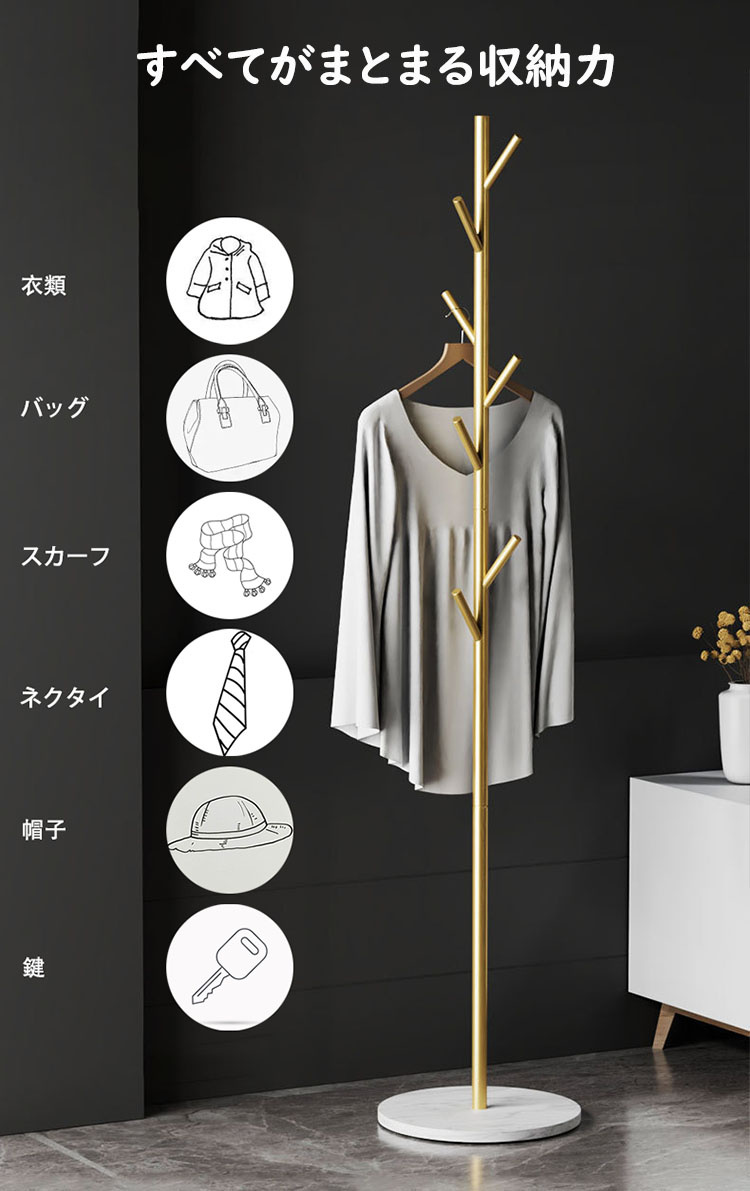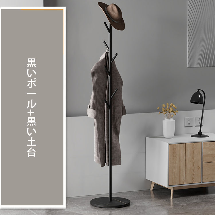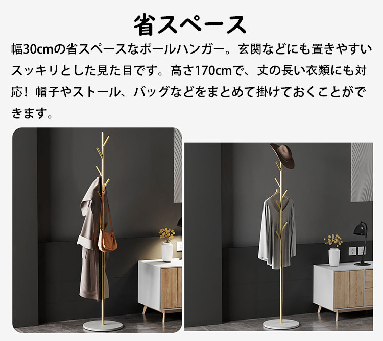 高さ170cm ポールハンガー おしゃれ ハンガーラック スリム 落ちにくい 倒れにくい土台 ハンガーポール コートハンガー 組立簡単 金属製 岩板底 子供 大人 衣類収納 玄関収納 衣 収納スペース