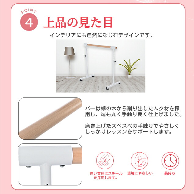 バレーバー バレエバー スタンド バレエ バー レッスンバー 高さ 5段階 85cm 90cm 95cm 100cm 105cm 調整 耐荷重100kg 天然木 プレゼント レッスン 練習 新 手すり