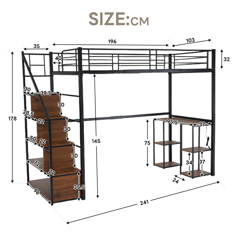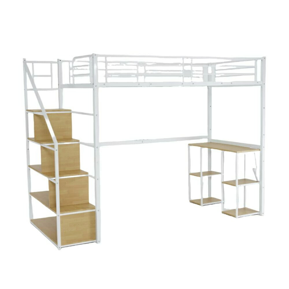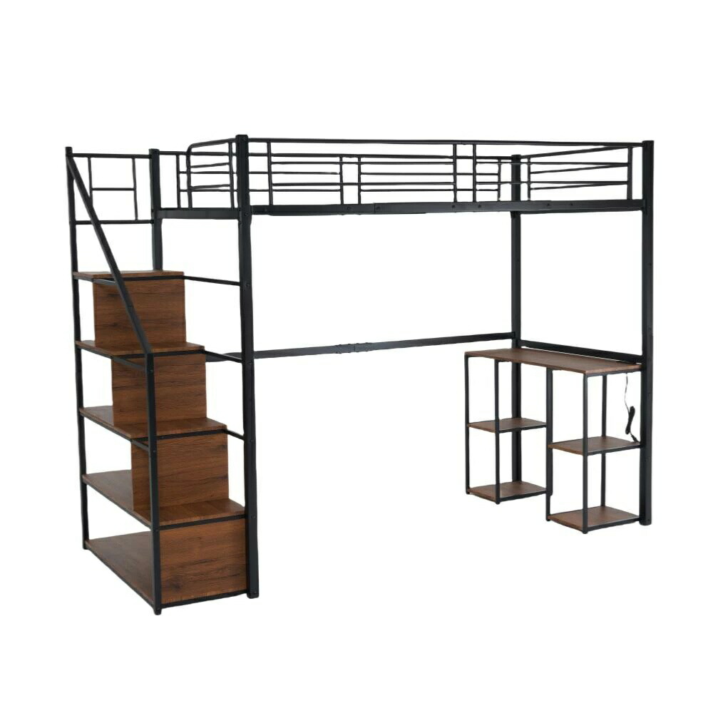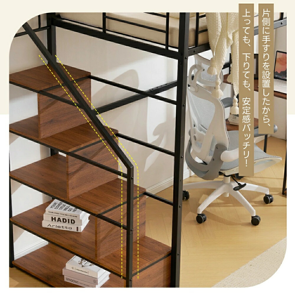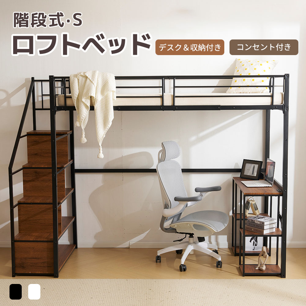 ロフトベッド 階段付き シングル デス ブラック ホワイト