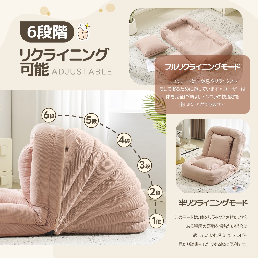 ソファーベッド ソファー 座椅子 1人 グレー ピンク アイボリー ブルー エクルベージュ