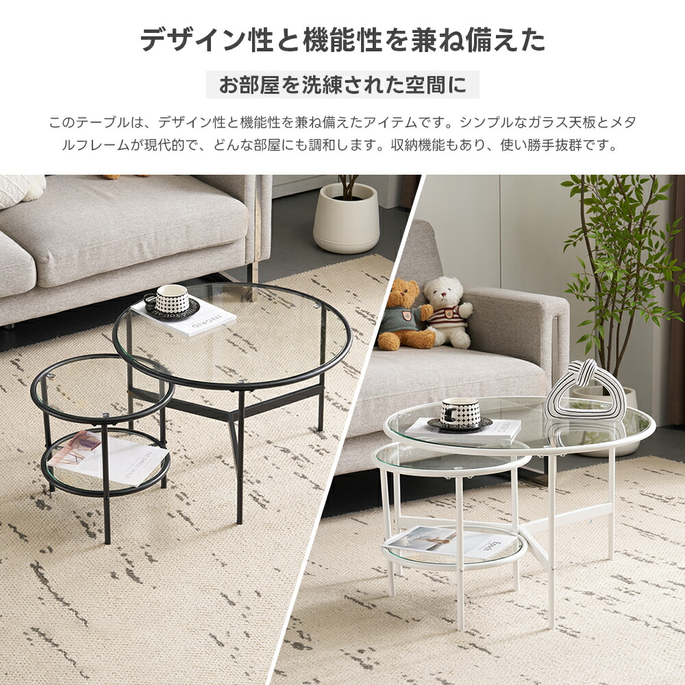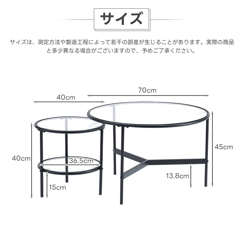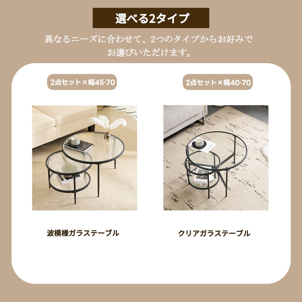 センターテーブル ネストテーブル ガラ 1点×幅45 2点セット×幅45?70 2点セット×幅40?70 ホワイト ブラック