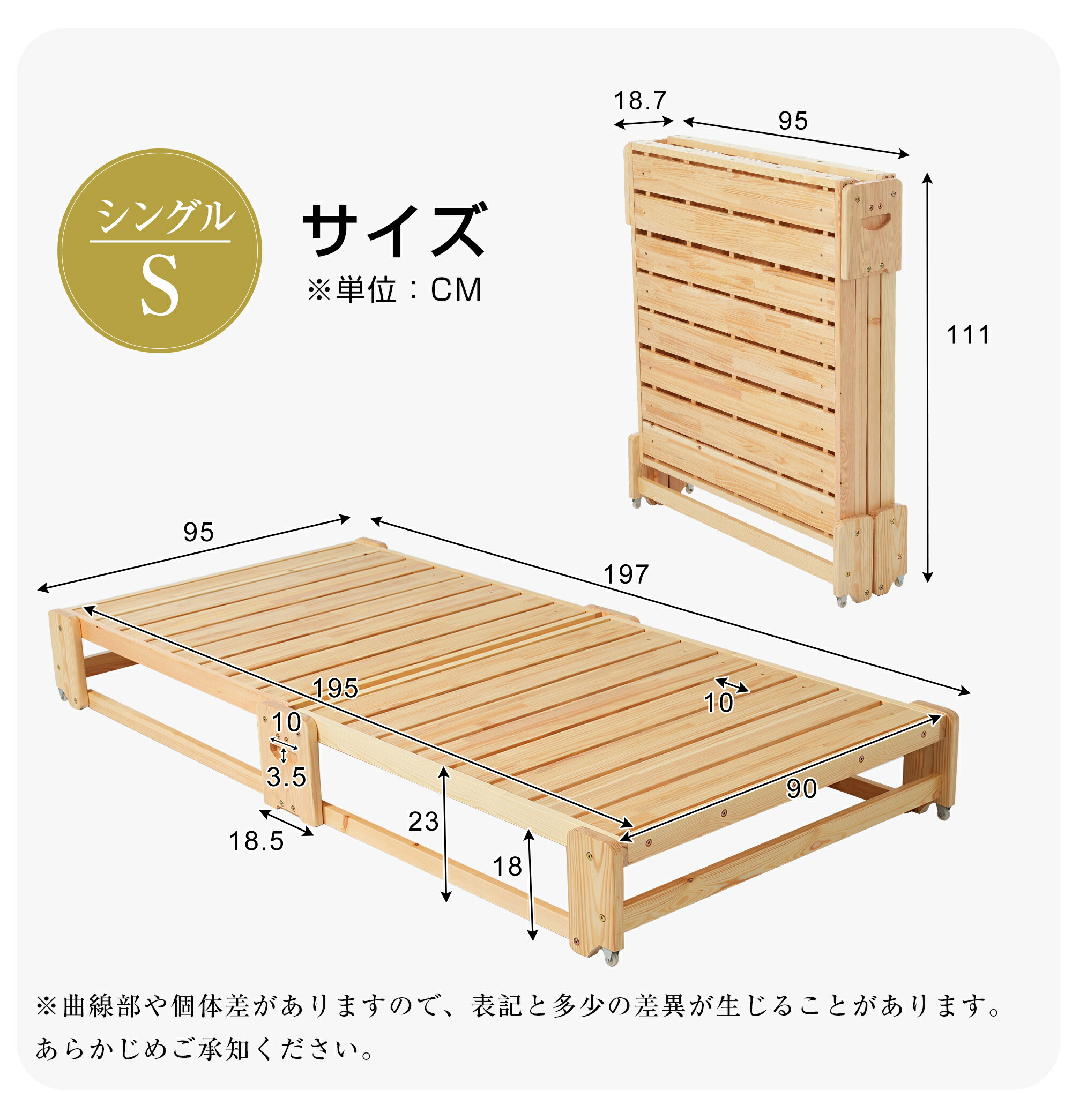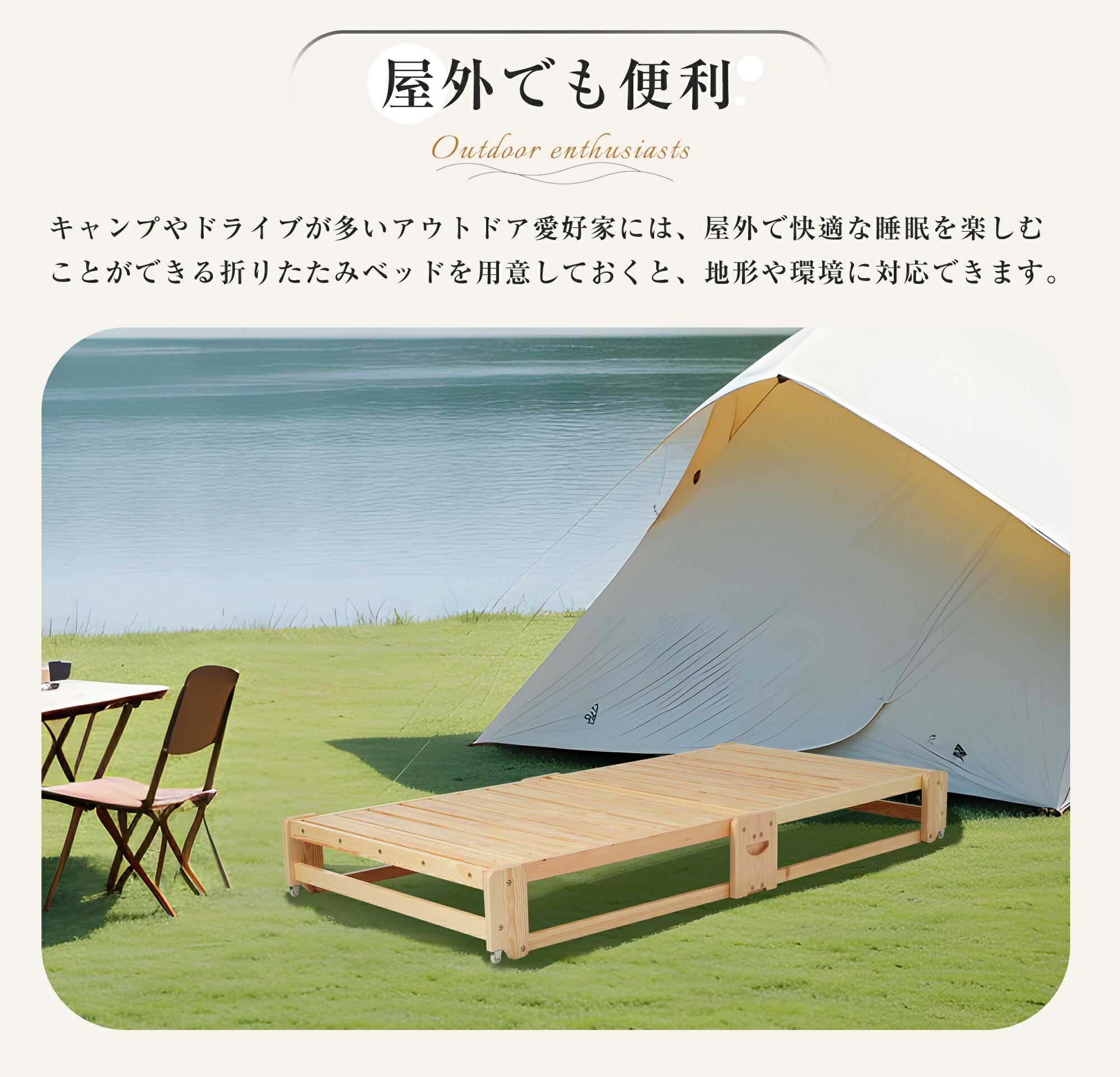 折りたたみベッド 天然木 2way 完 組立品 組立不要【完成品】 197*95cm 180*80cm