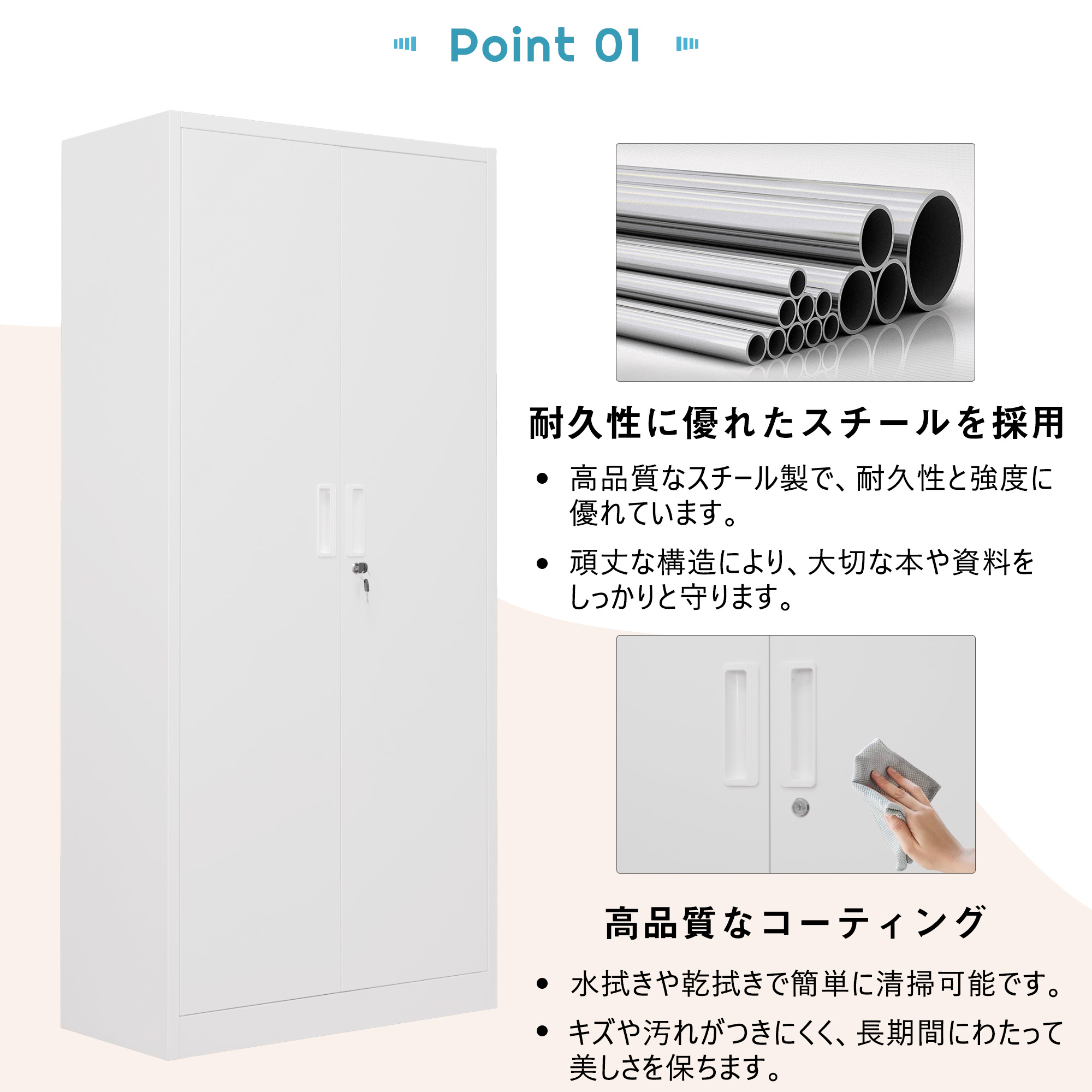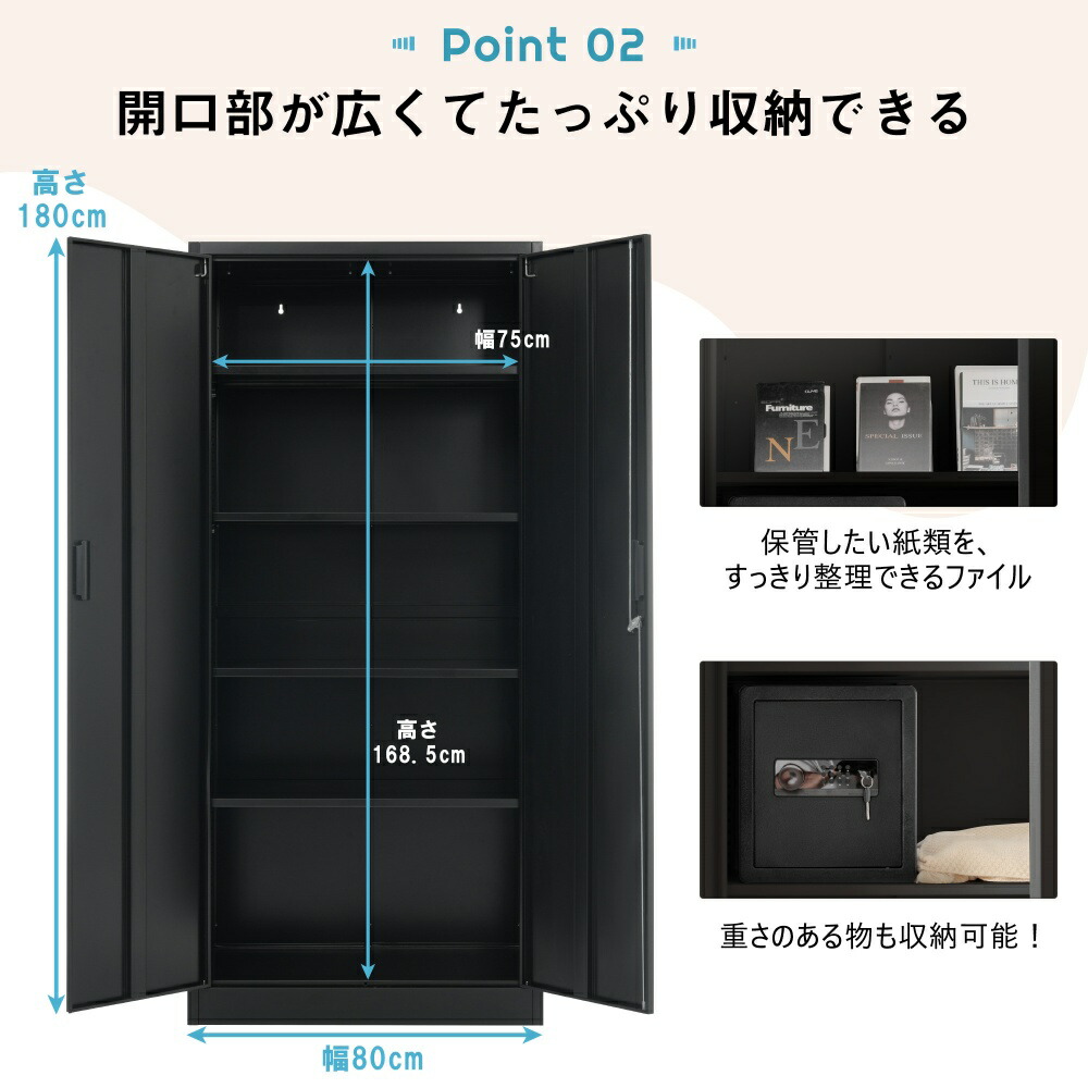 スチール書庫 両開き書庫 キャビネット ホワイト 【NEW】ブラック