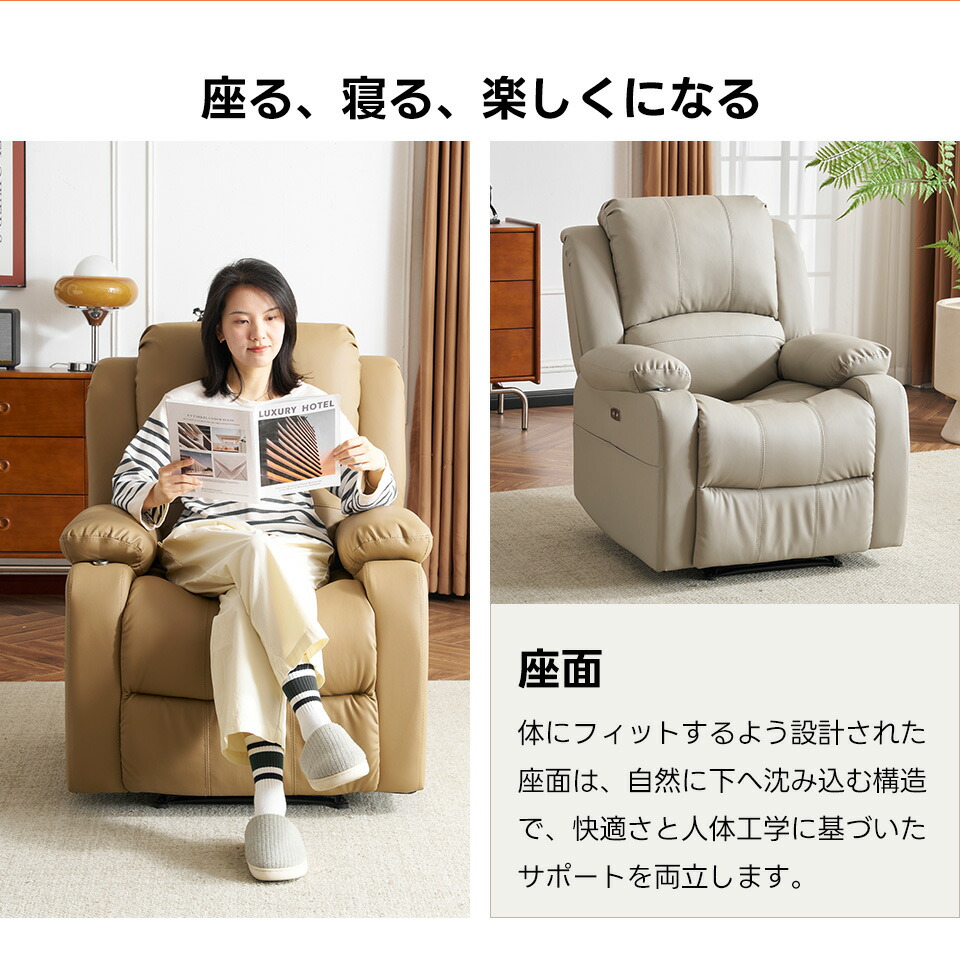 電動リクライニング ソファー 1人掛け ブラック アッシュグレー ライトコーヒー ダークグレー