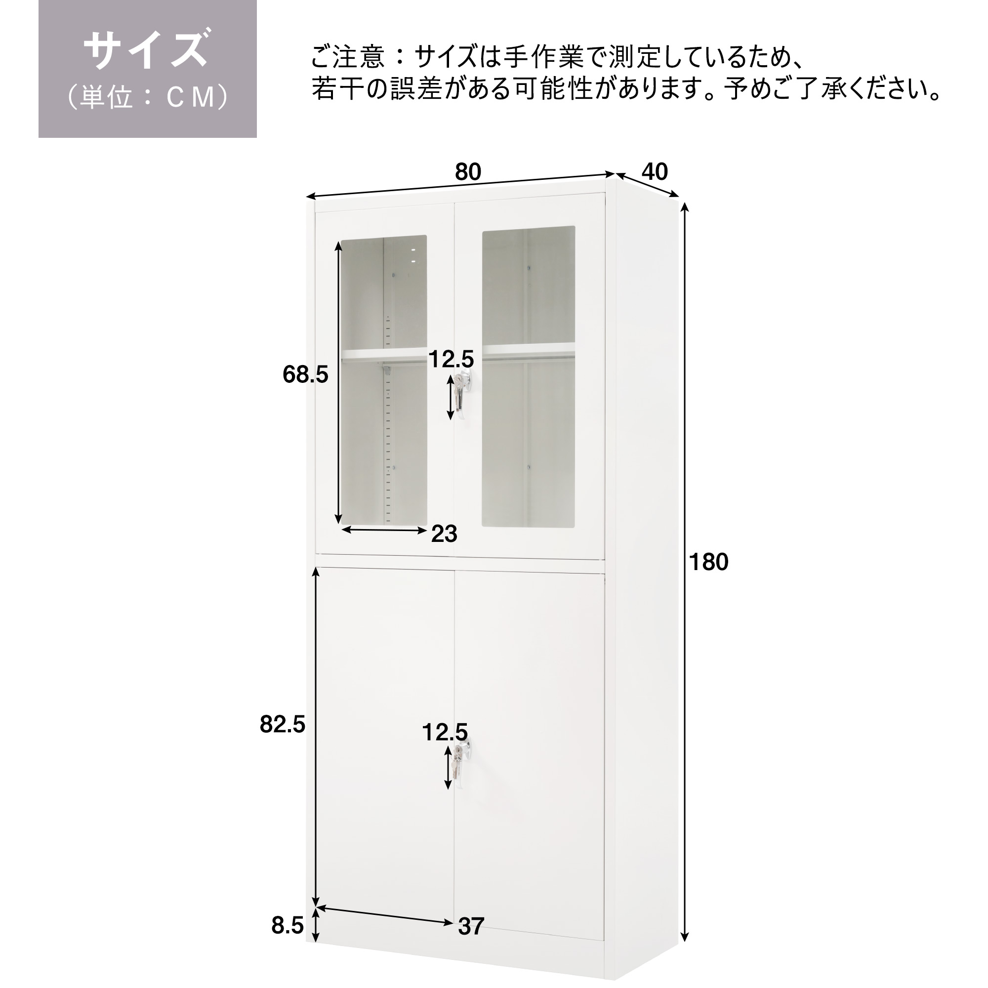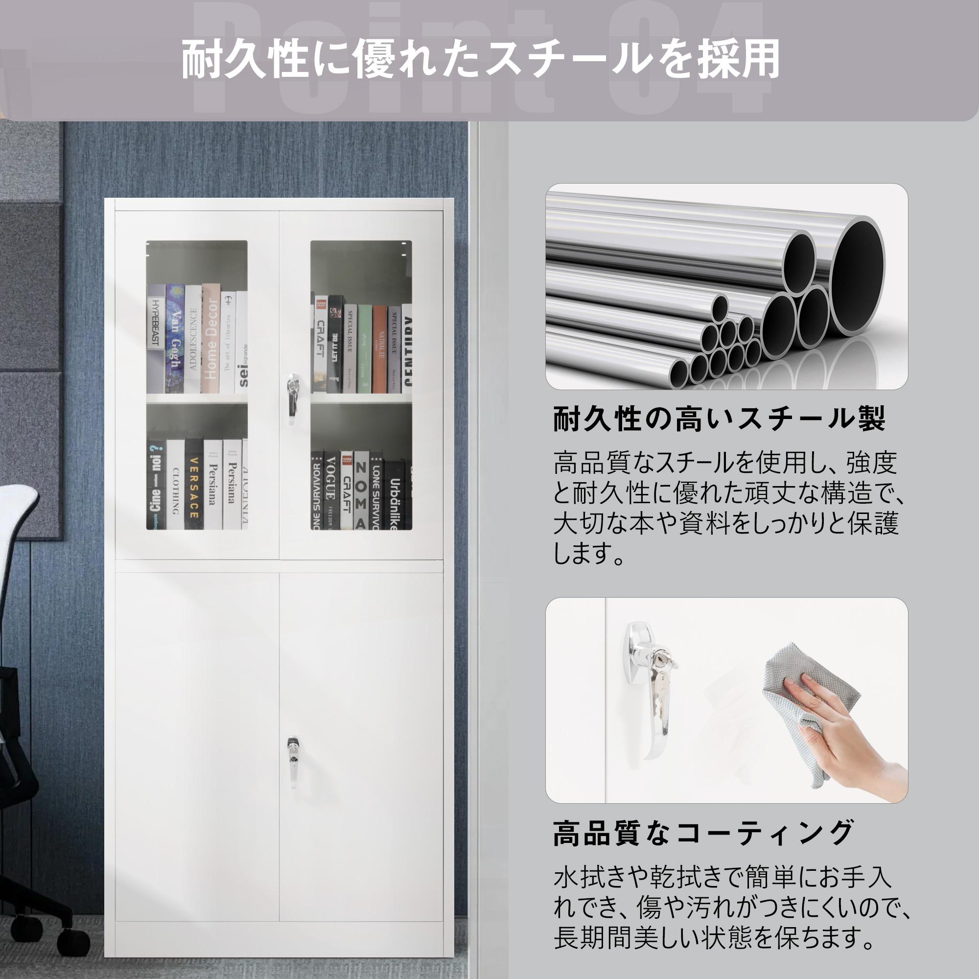 スチール書庫 両開き書庫 キャビネット本収納 幅80 高さ180cm 書類保管庫 大容量収納 鍵付き 書庫 多用途 保管庫 書類 収納 収納棚 物品棚 業務用 おしゃれ キャビネット オフィス