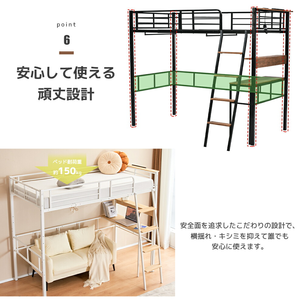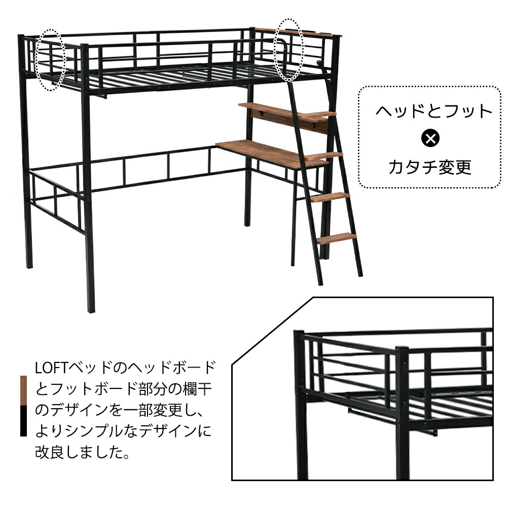 ロフトベッド 移動可デスク付き システ ブラック ホワイト