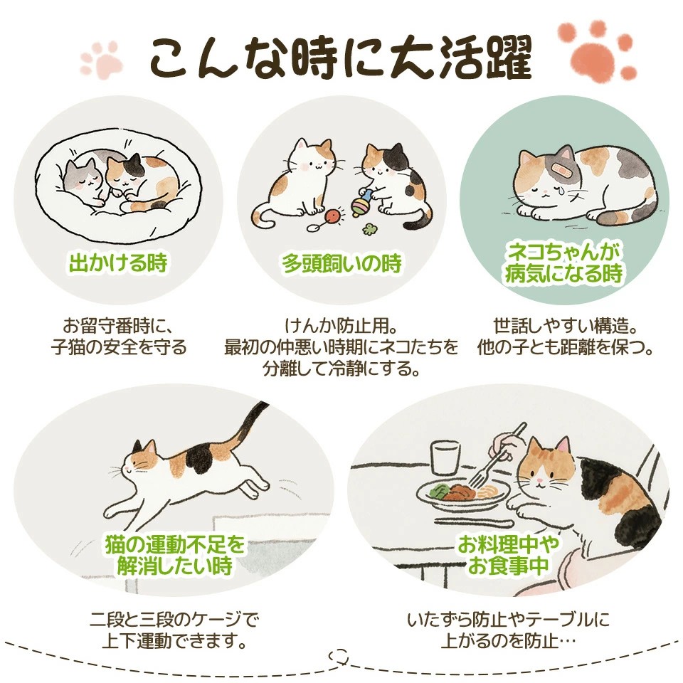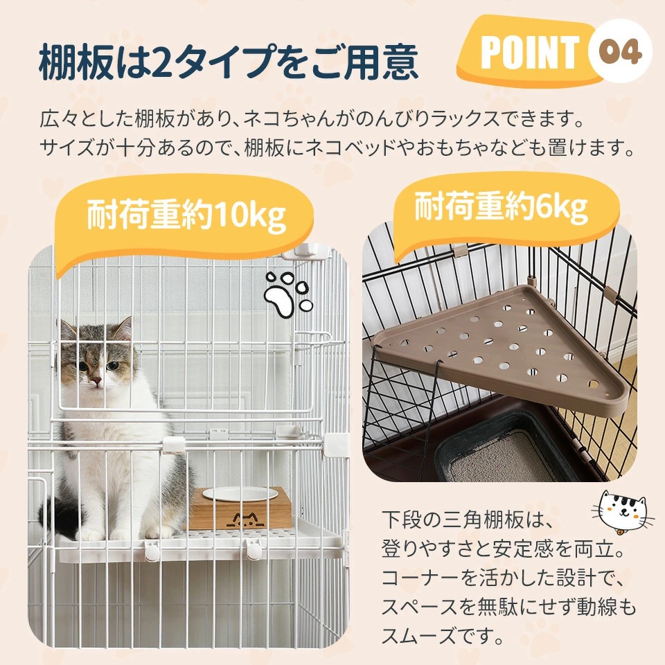 猫 ケージ 2段 1段可能 キャットケ 猫用品 ケージ 人気 ホワイト ブラウン