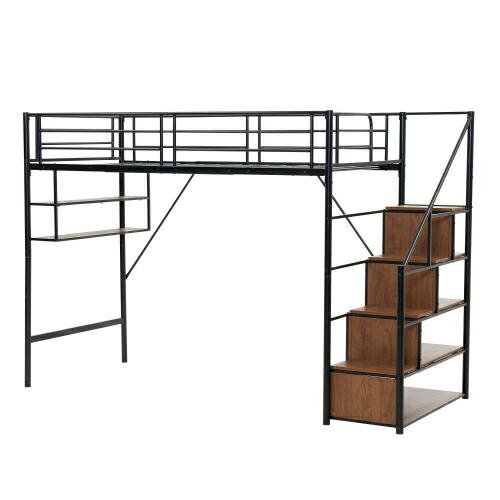 システムベッド 階段付き ロフトベッド 垂直ハシゴ×ロフトベッド 段階付き×ロフトベッド ホワイト ブラック