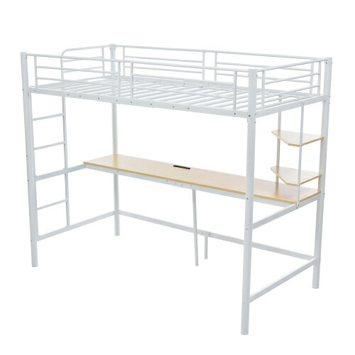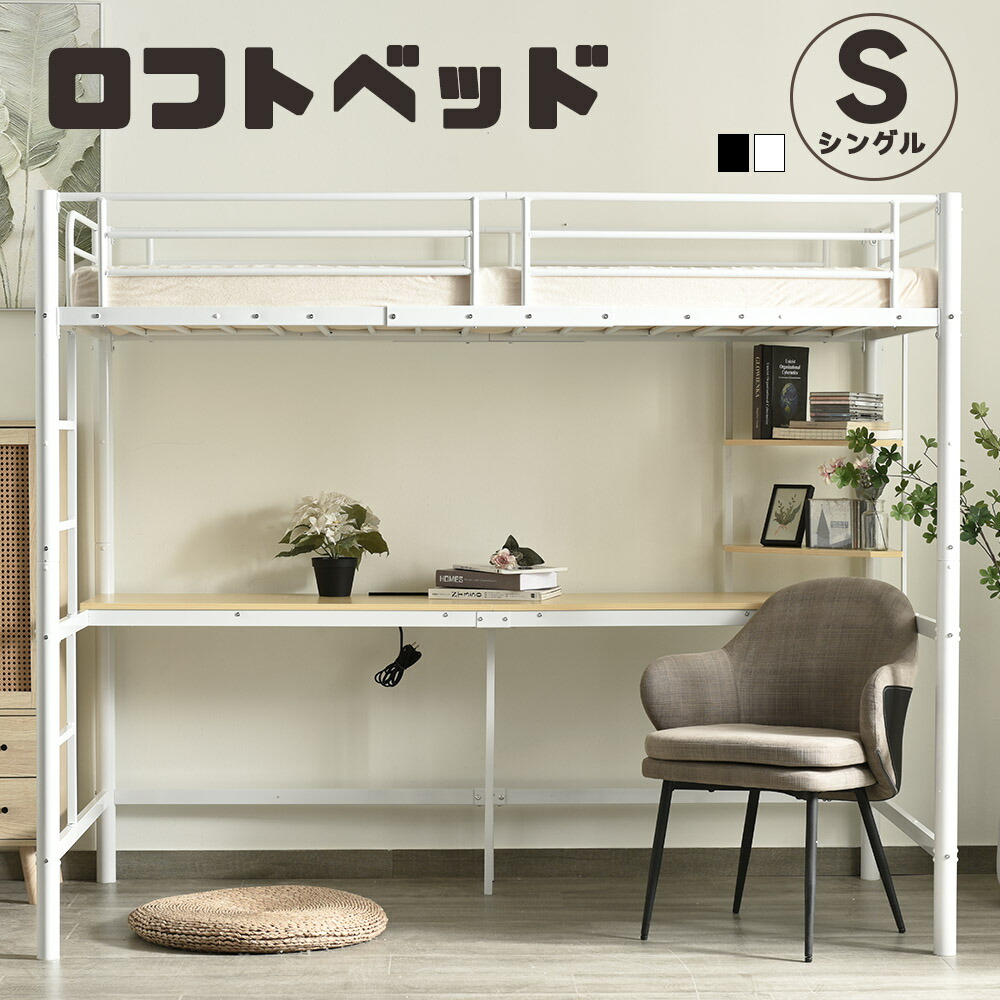 ロフトベッド デスク付き パイプベッド ホワイト ブラック