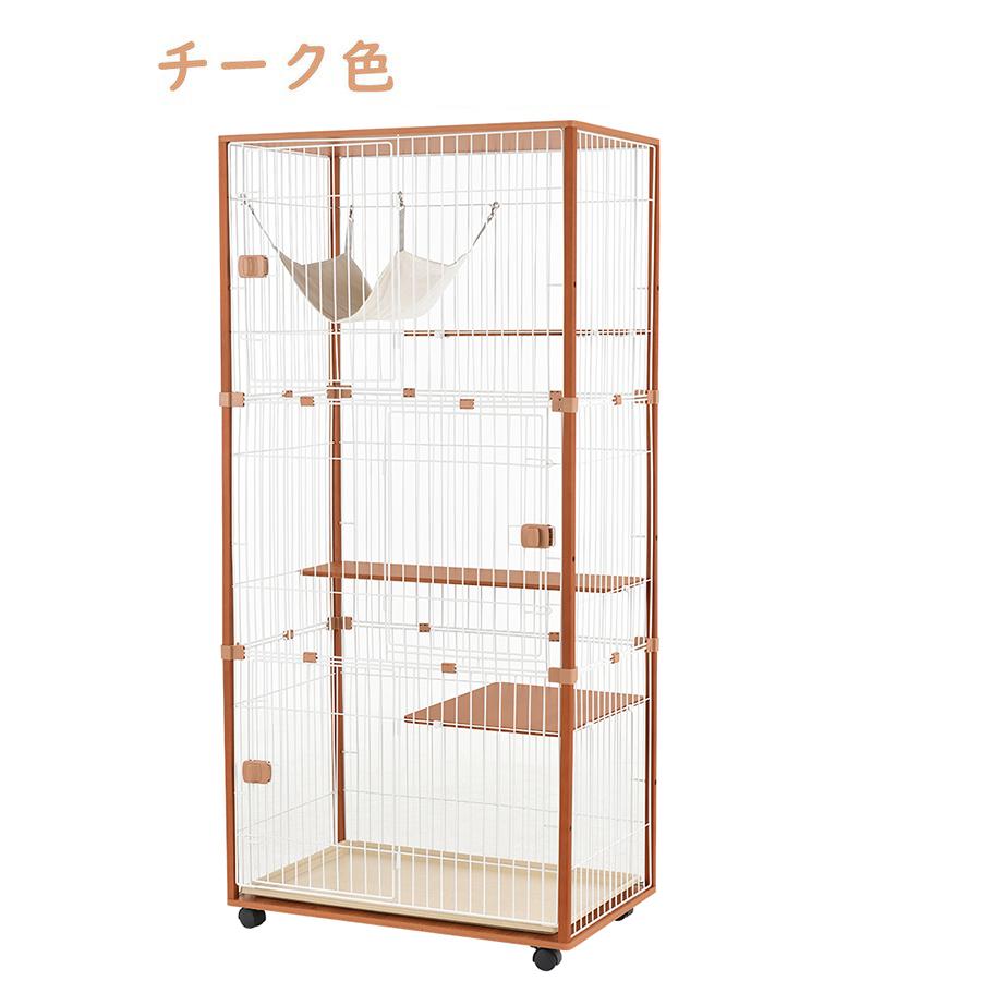 猫 ケージ キャットケージ 3段 木製 ペット ペットグッズ 通販 ナチュラル チーク色