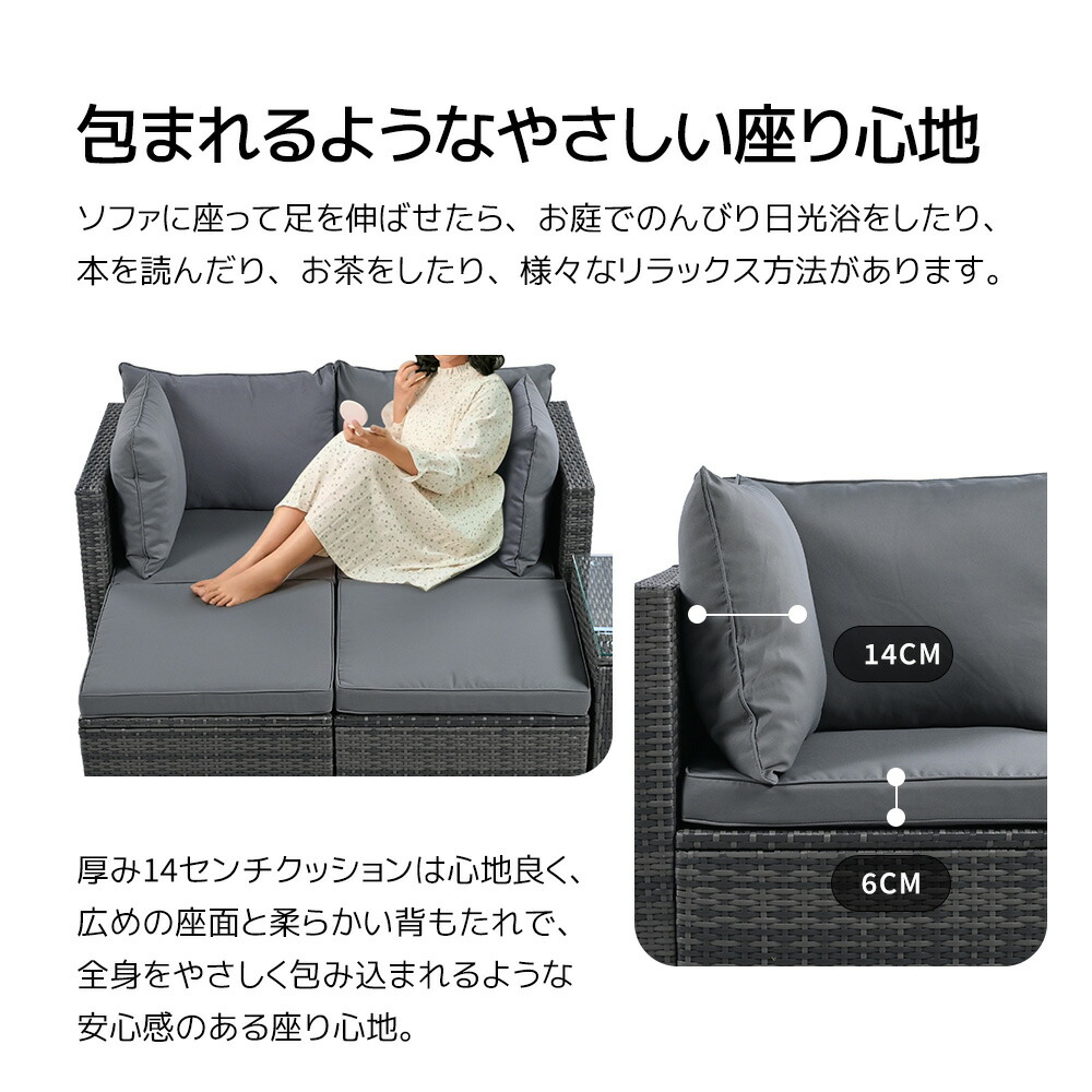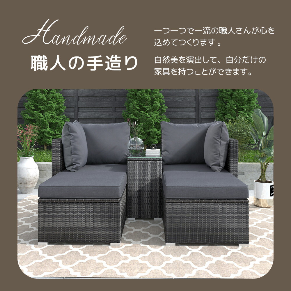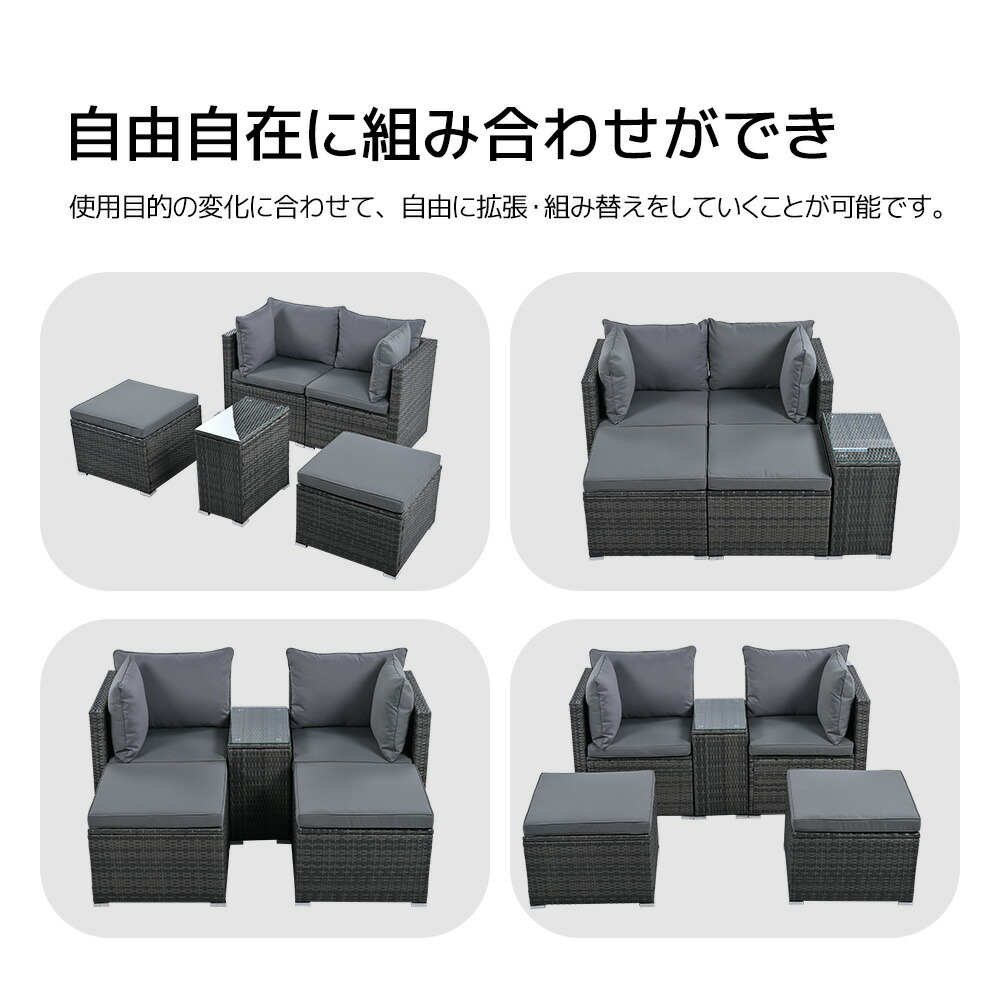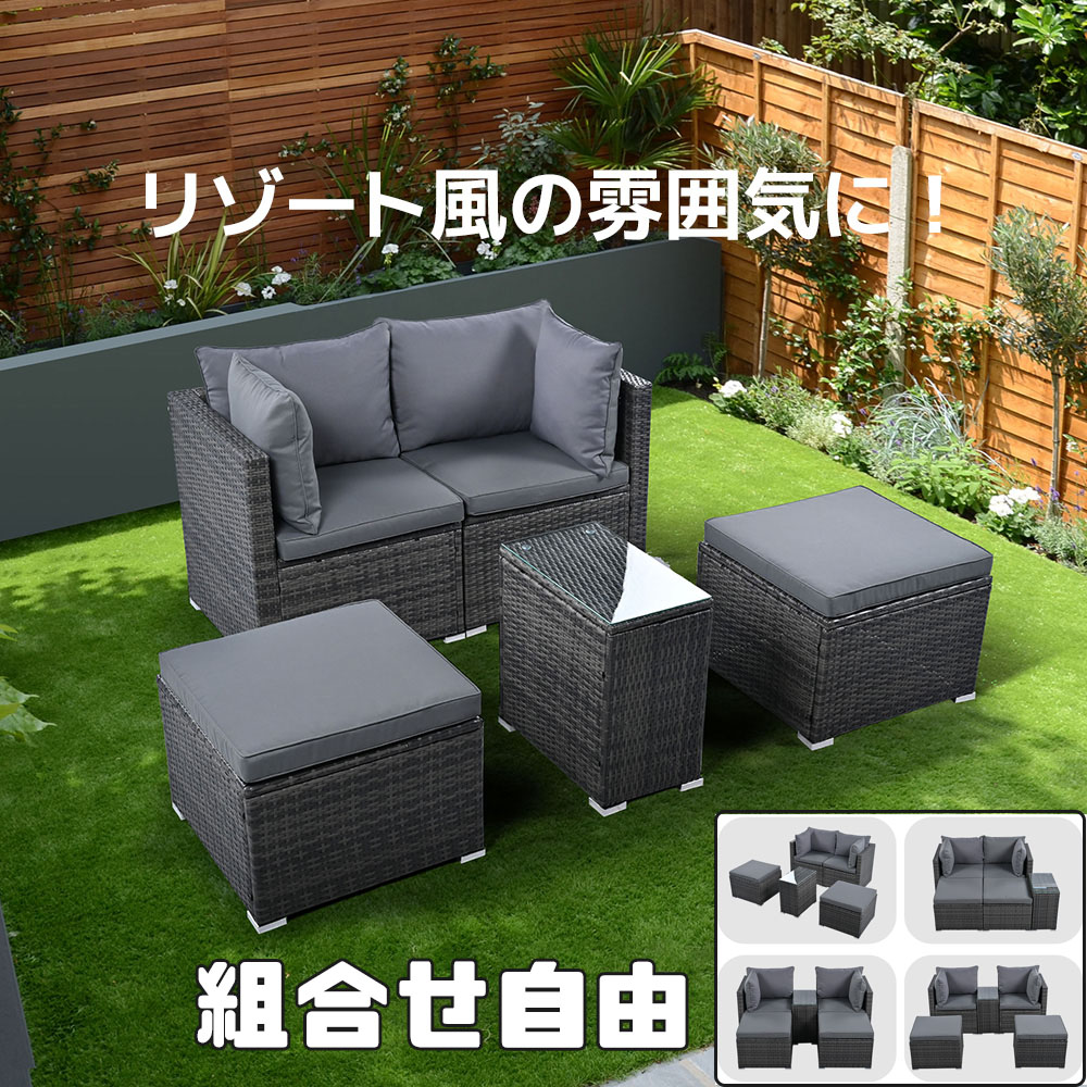 ガーデンファニチャー ラタン調 組合せ グレー 【NEW】ブラック