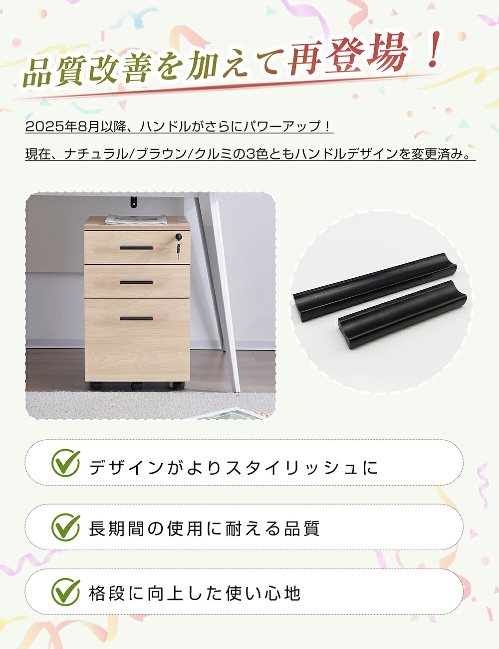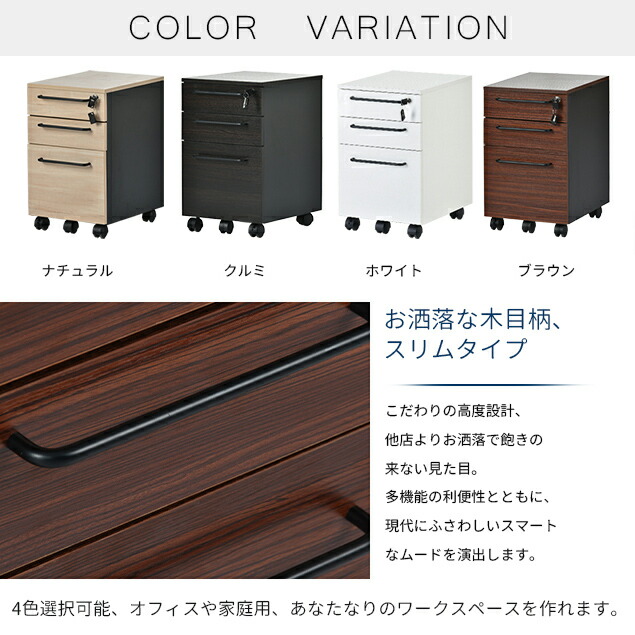 デスクワゴン 完成品 3段 組立て不要 ナチュラル ブラウン クルミ