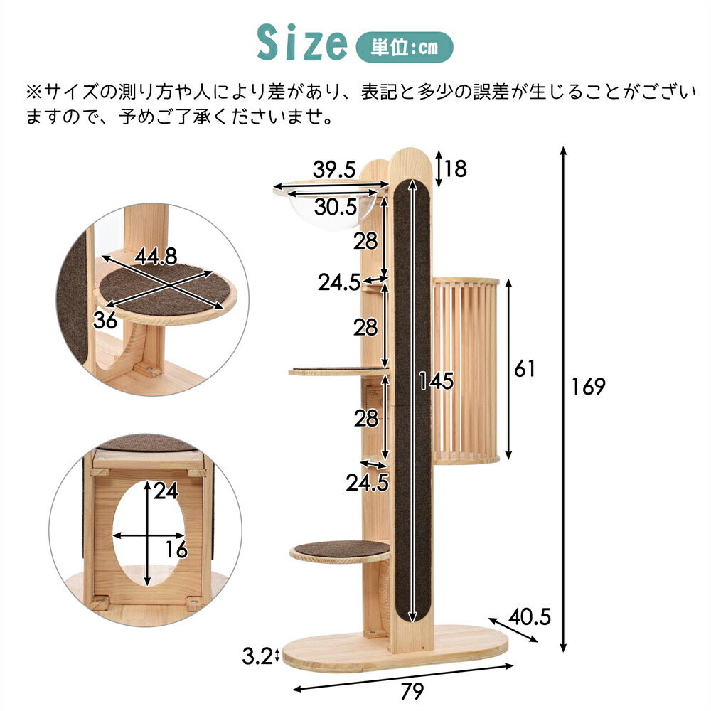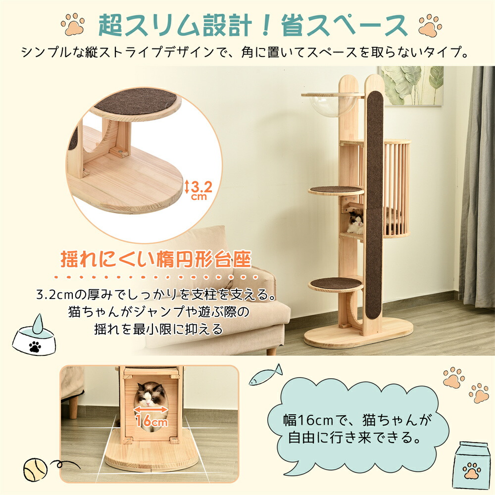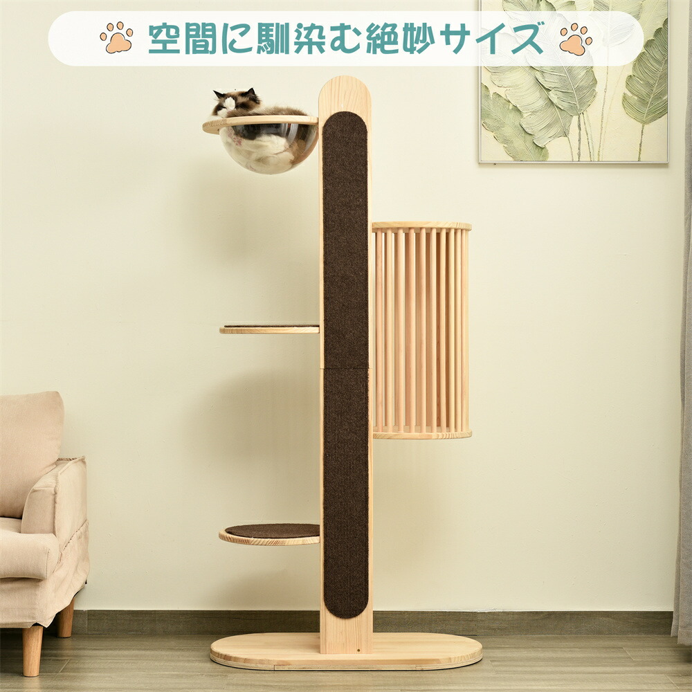 キャットタワー 据え置き型 木製 宇宙船付き 高さ169cm 猫タワー ネコタワー 隠れ家 爪とぎ ネコ タワー おしゃれ 天然木 多頭飼い 大型猫 子猫 運動不足 可愛い