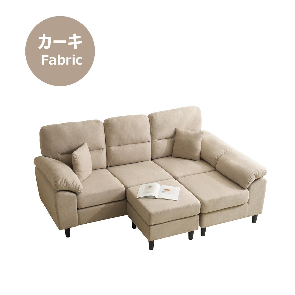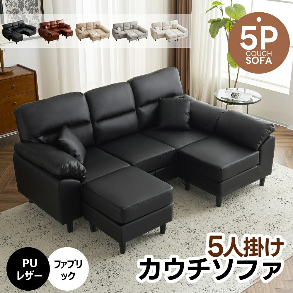 カウチソファ ソファ 5人掛け 3人掛 ホワイト グレー カーキー ブラウン(PUレザー) ブラック(PUレザー)
