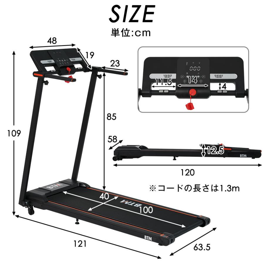 電動ランニングマシン 折りたたみ ルームランナー 薄型 家庭用 電動 MAX12km h フィットネスマシーン BTM ランニングマシン 心拍数計測 有酸素運動 簡単操作パネル シンプル