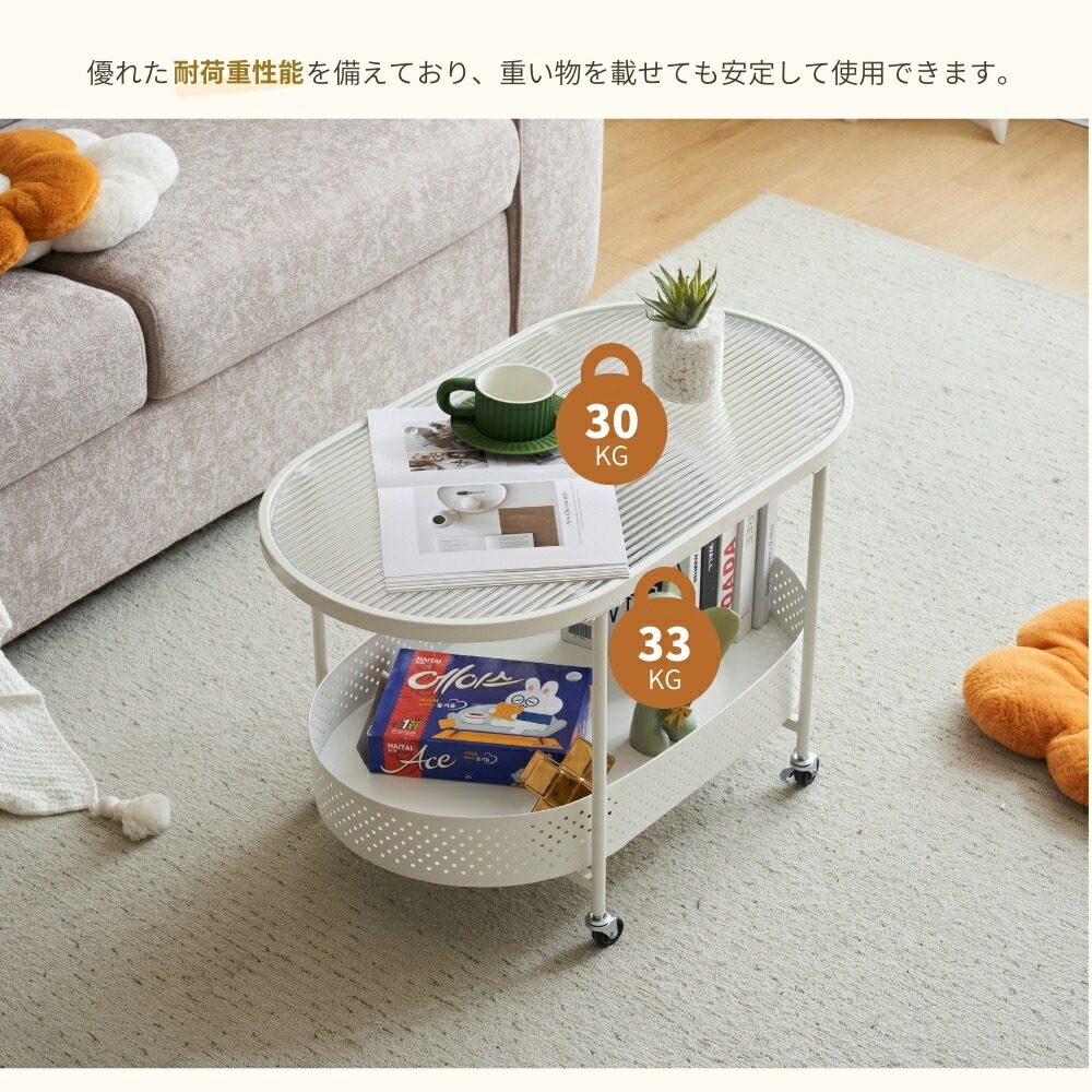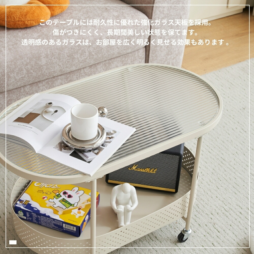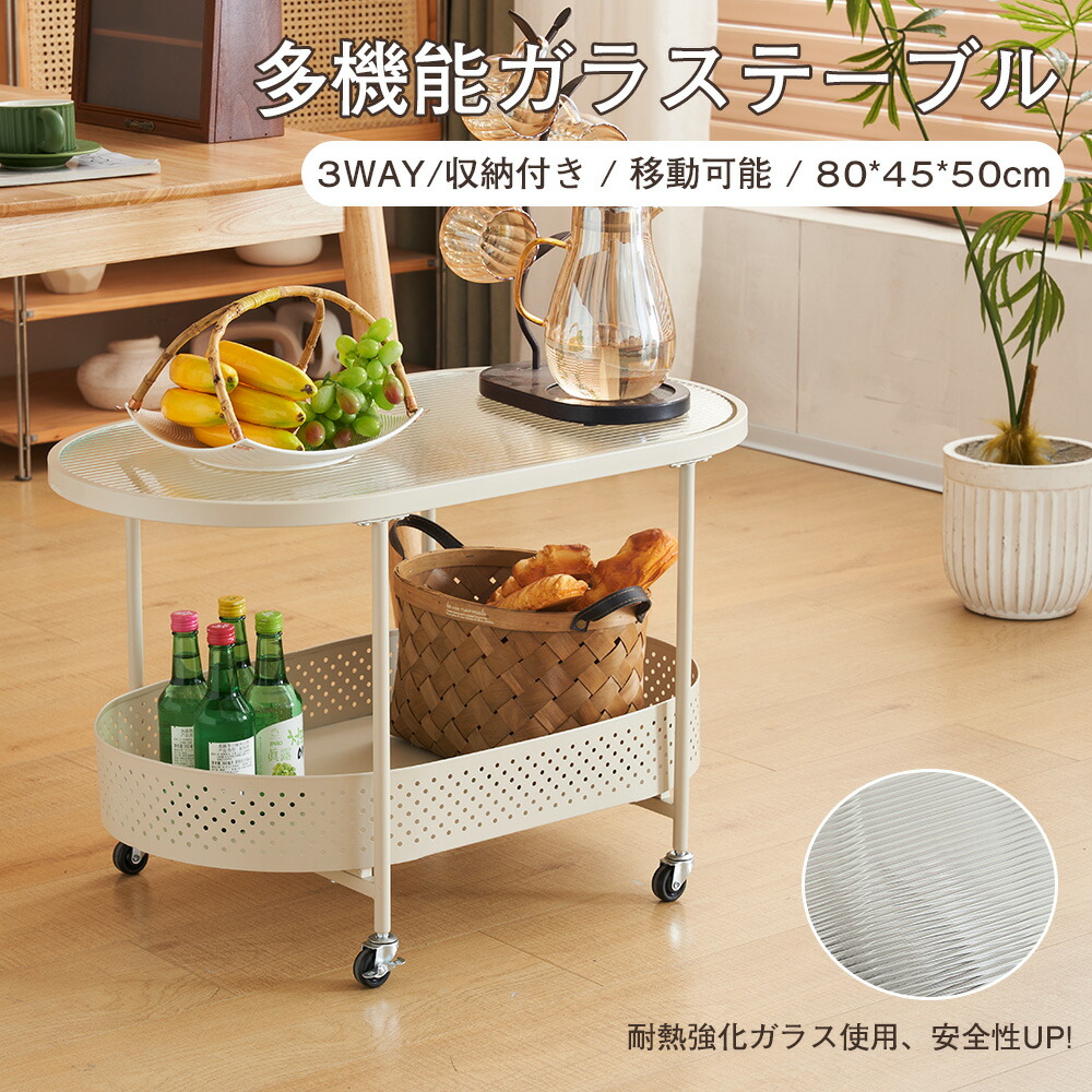 ガラステーブル 強化ガラス 幅80 可動式 省スペース キャスター付き サイドテーブル 多機能 収納棚付き 2段 ワゴンテーブル ソファーテーブル キッチンワゴン センターテーブル 北欧風
