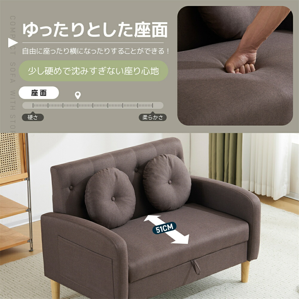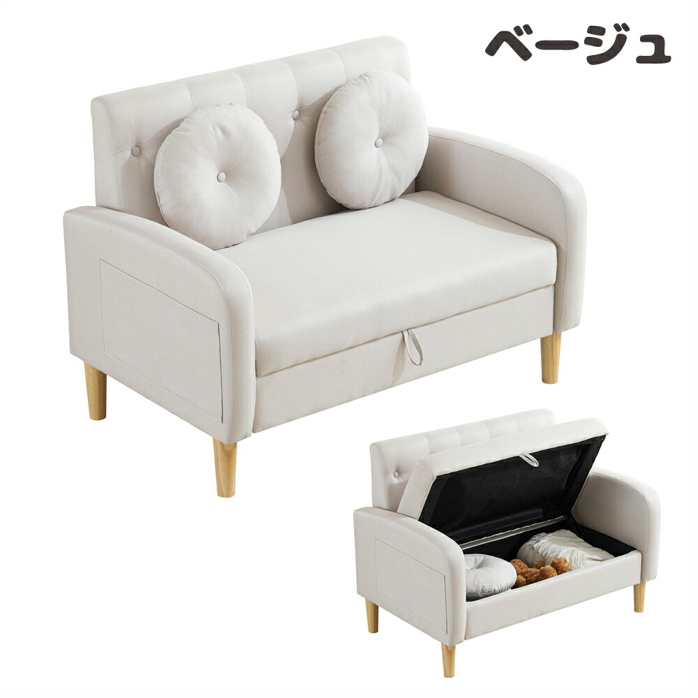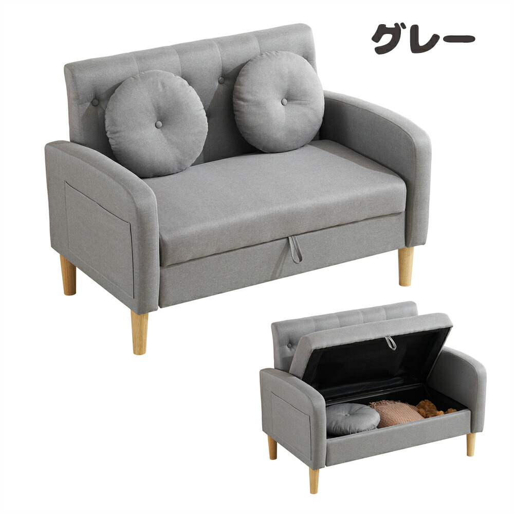 ソファ 2人掛け収納付き ローソファ ブラウン ベージュ グレー カーキー