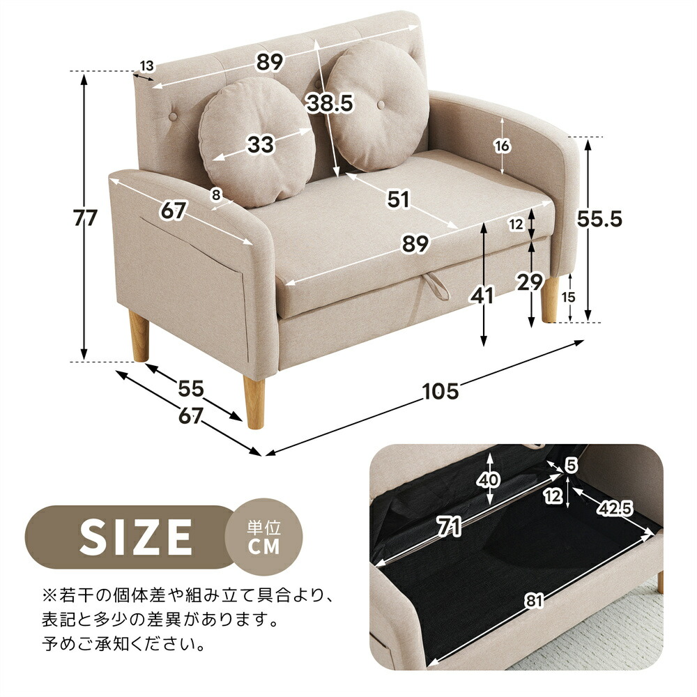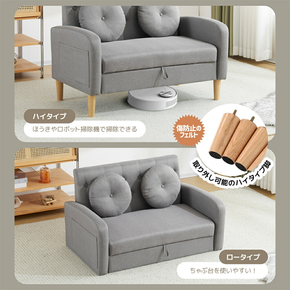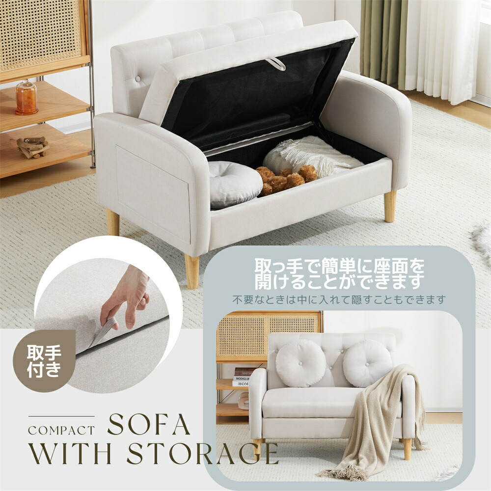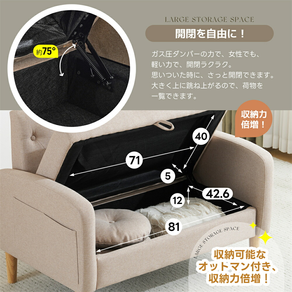 ソファ 2人掛け収納付き ローソファ ブラウン ベージュ グレー カーキー