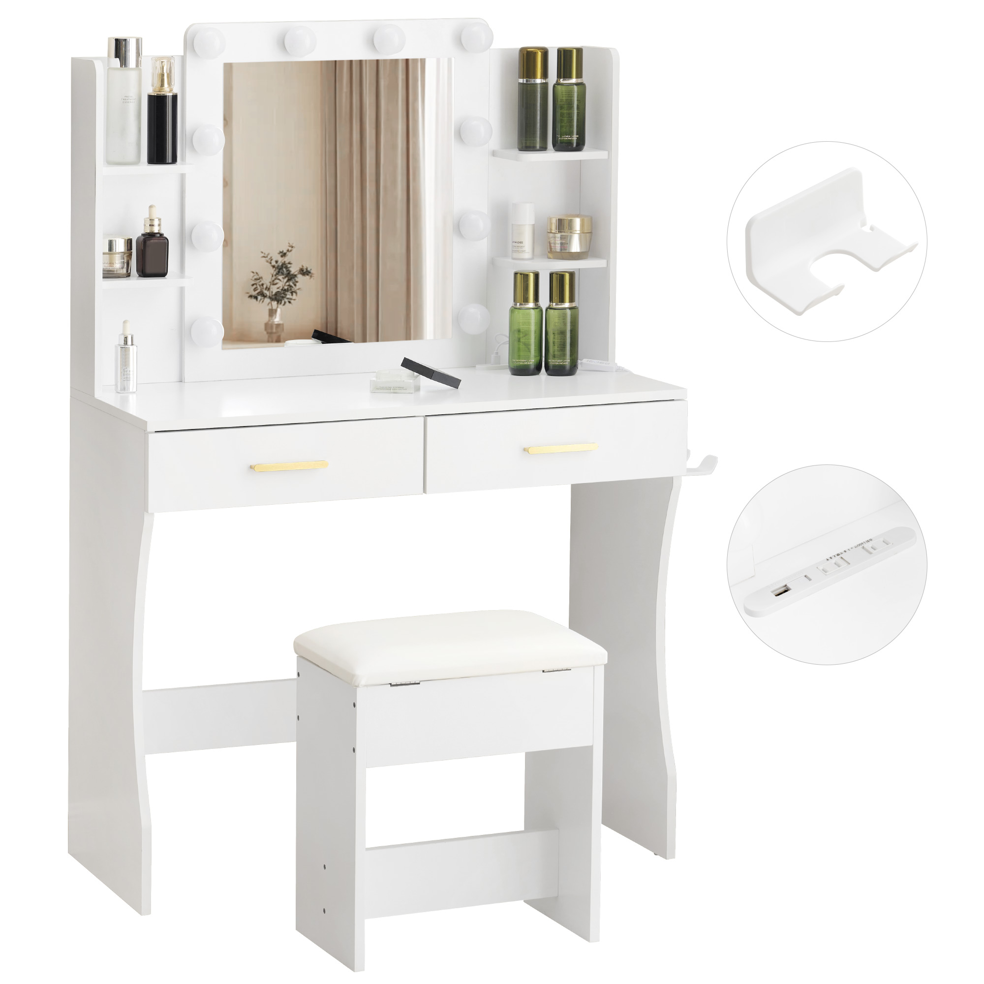 ドレッサー 化粧台 コンセント付き テ