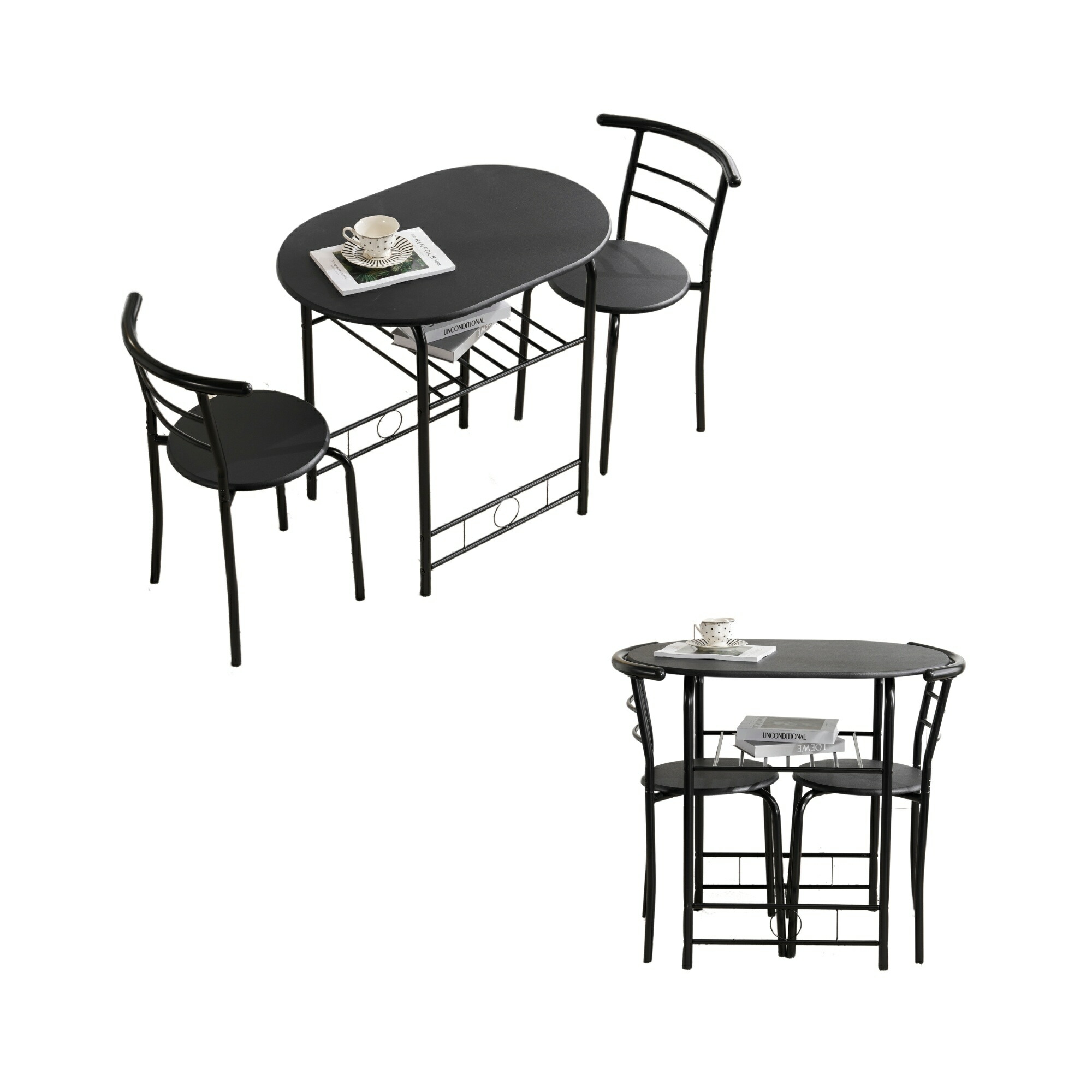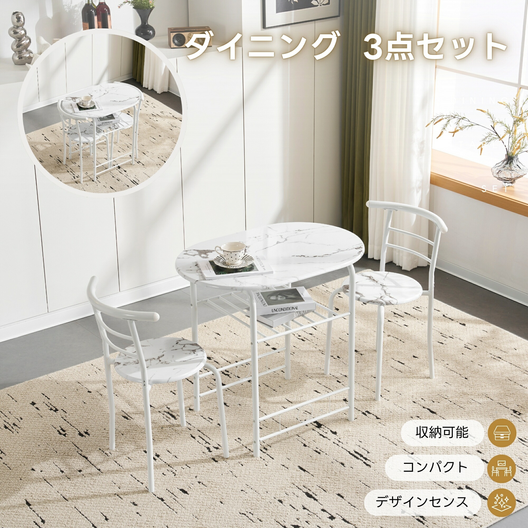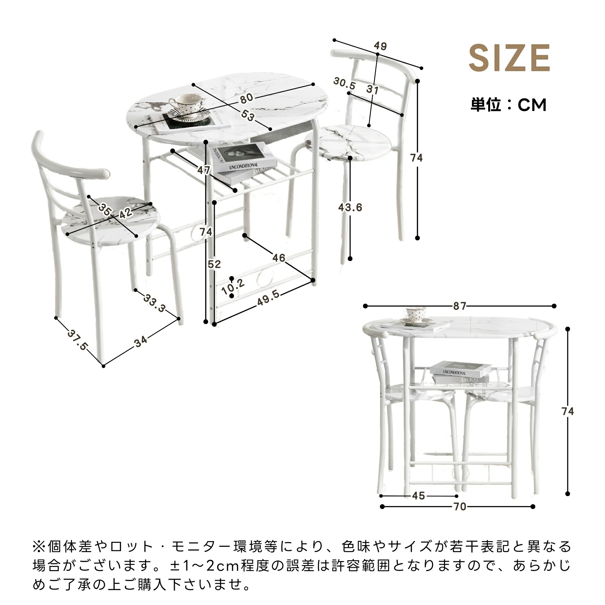 ダイニング 3点セット2人掛け 円形 大理石調×ホワイト 大理石調×ブラック