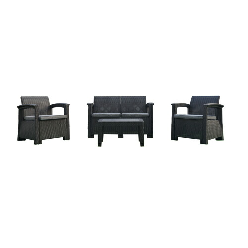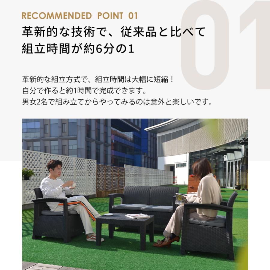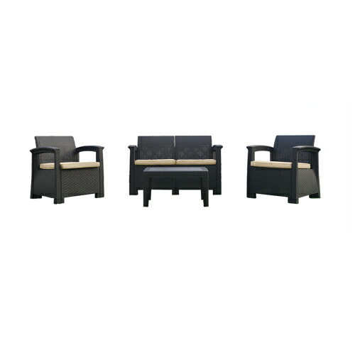 ガーデンテーブルセット 雨ざらし 4人 クッション:グレー クッション:ベージュ