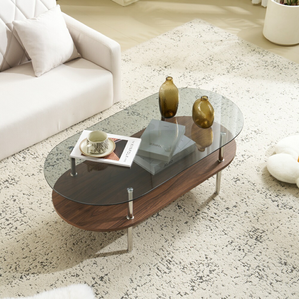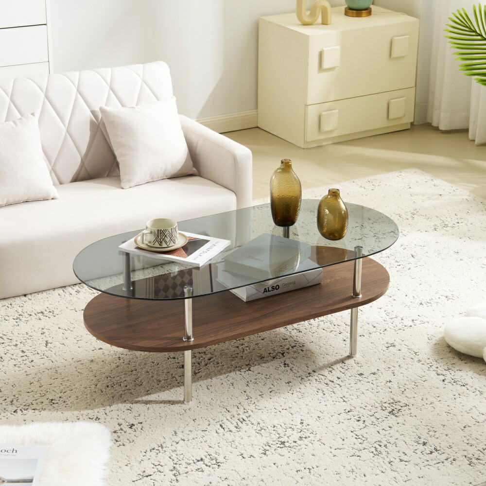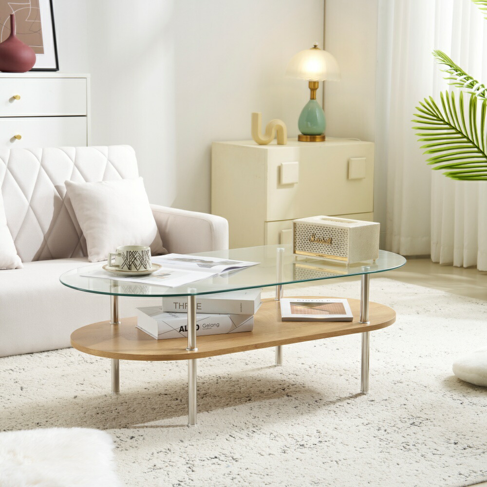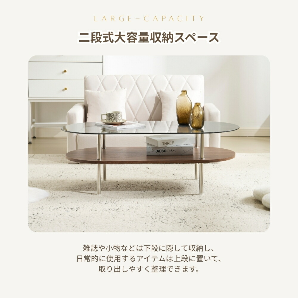 ガラステーブル 収納付き ローテーブル ブラウン ナチュラル