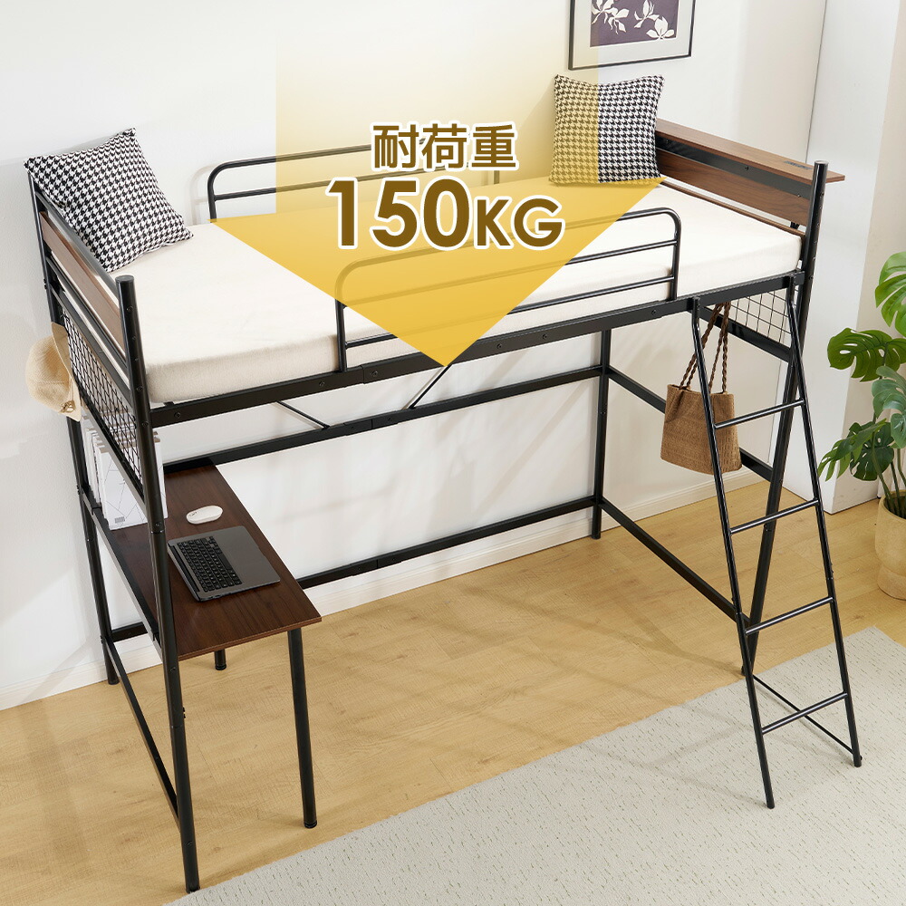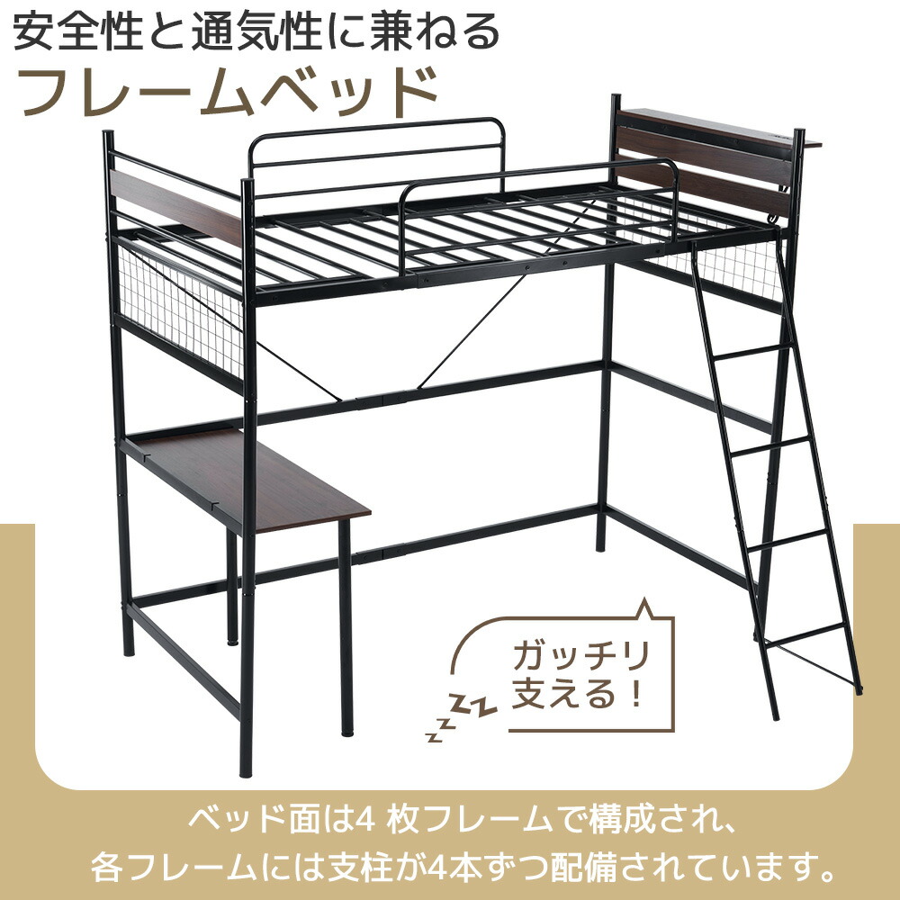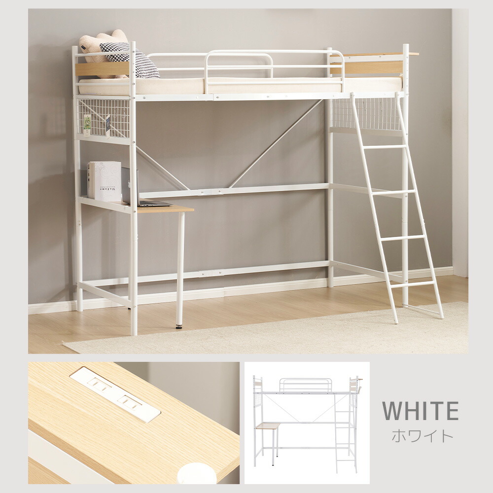 システムベット デスク付き ロフトベッ ホワイト ブラック