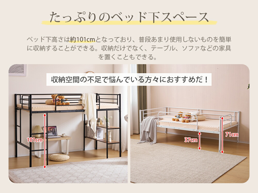 ロフトベッド 収納棚付き 高さ135c