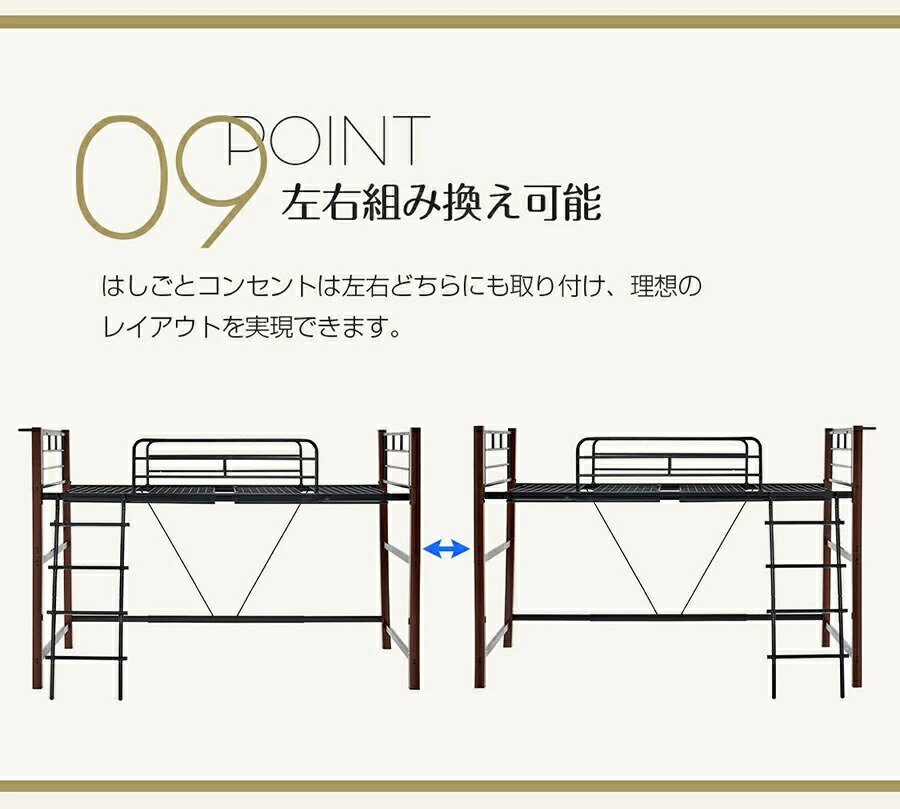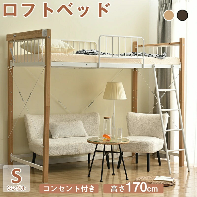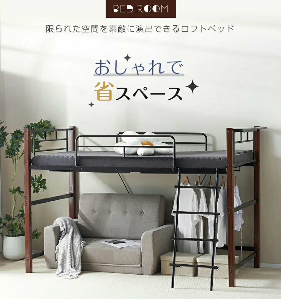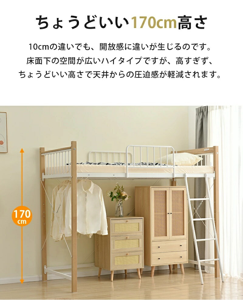ロフトベッド シングル 高さ3タイプ ロータイプ(高さ130cm) ミドルタイプ(高さ140cm) ブラック ホワイト