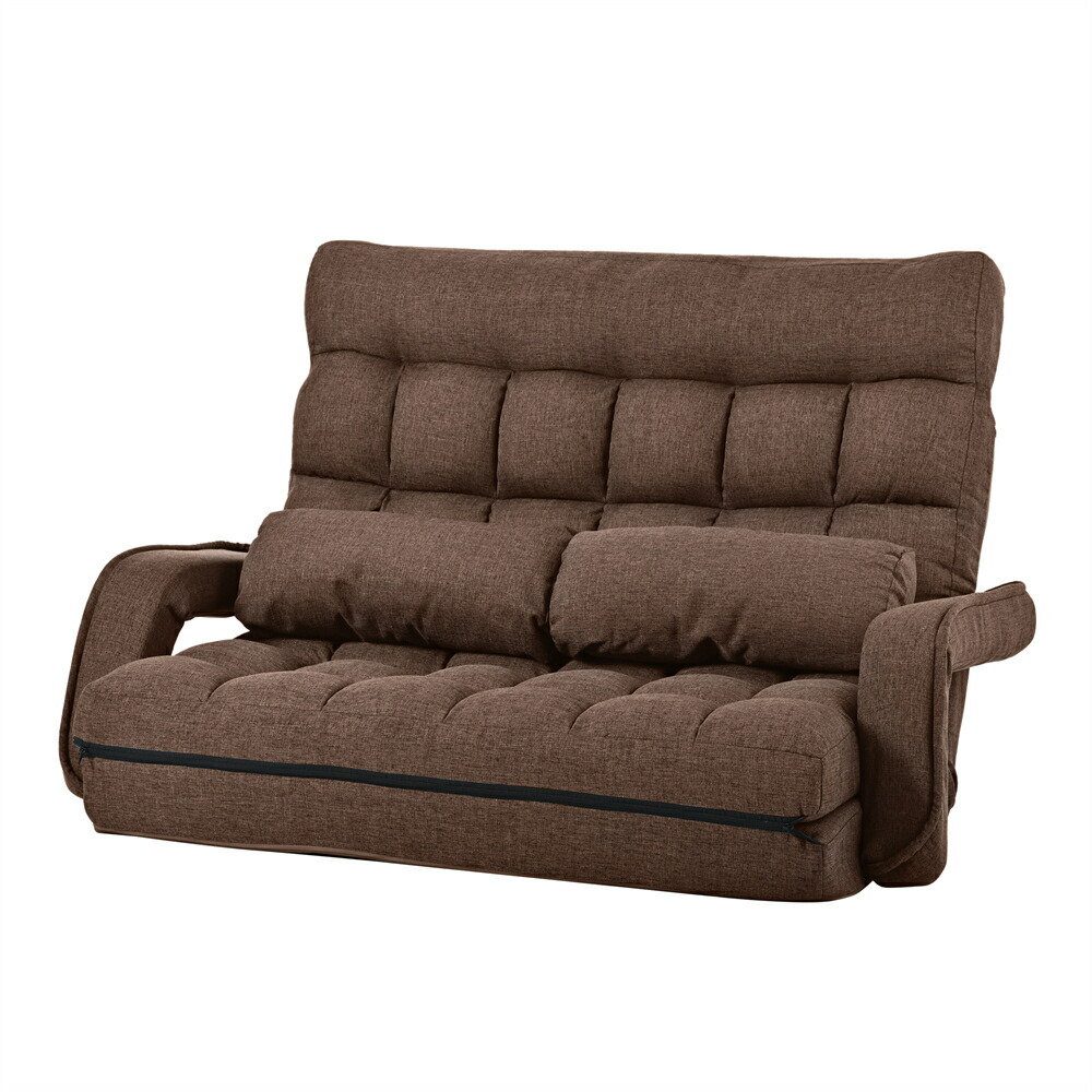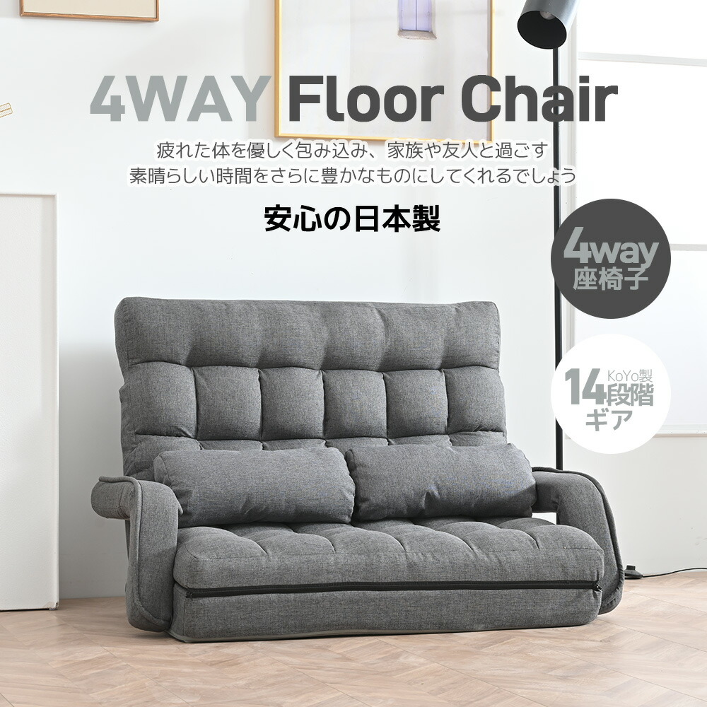 座椅子 二人掛け 4WAY 連動肘つき ブラウン ライトグレー