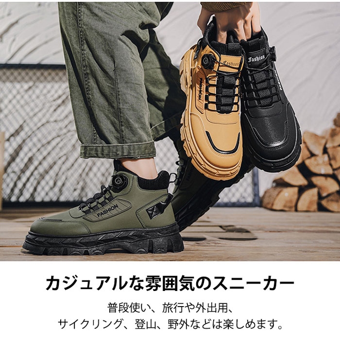 バイクブーツ メンズ ダイヤル式 厚底 メンズ靴 スニーカー 早い者勝ち ブラック グリーン ライトブラウン 39(内寸24.5cm) 40(内寸25.0cm) 41(内寸25.5cm) 42(内寸26.0cm) 43(内寸26.5cm) 44(内寸27.0cm)