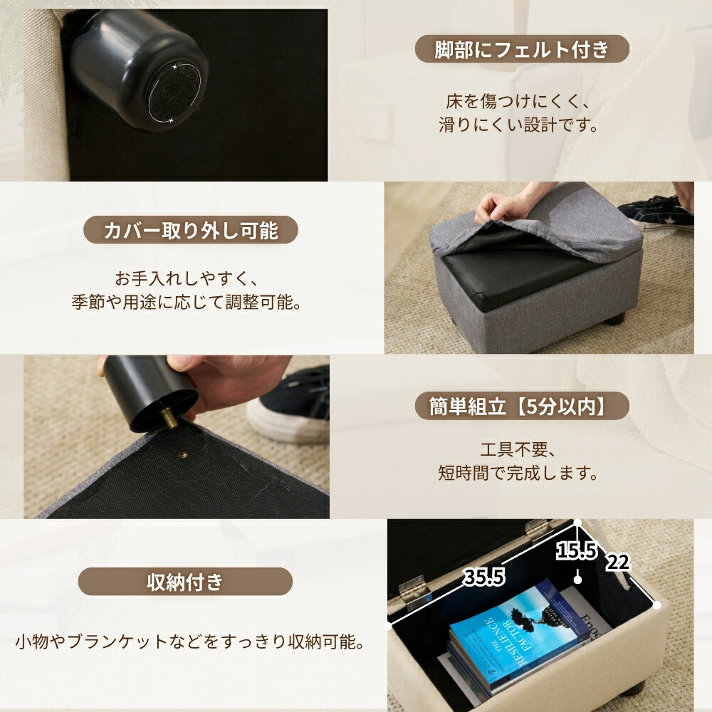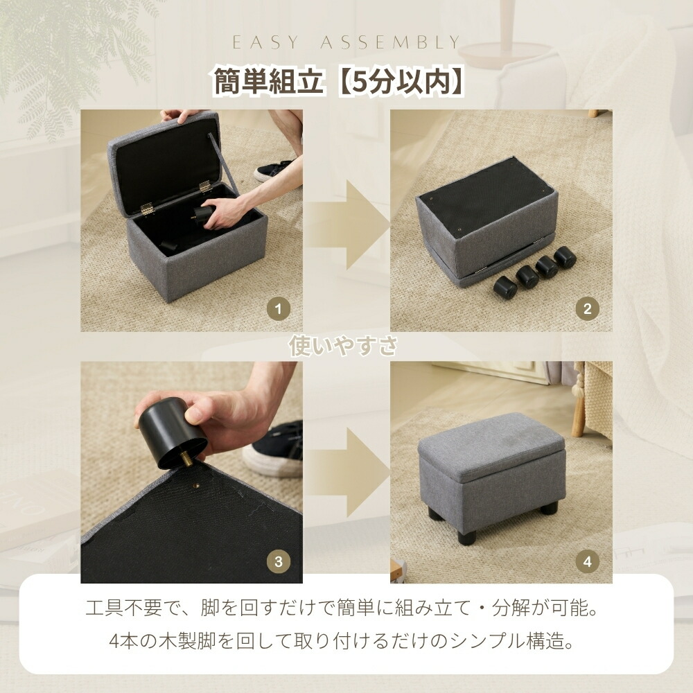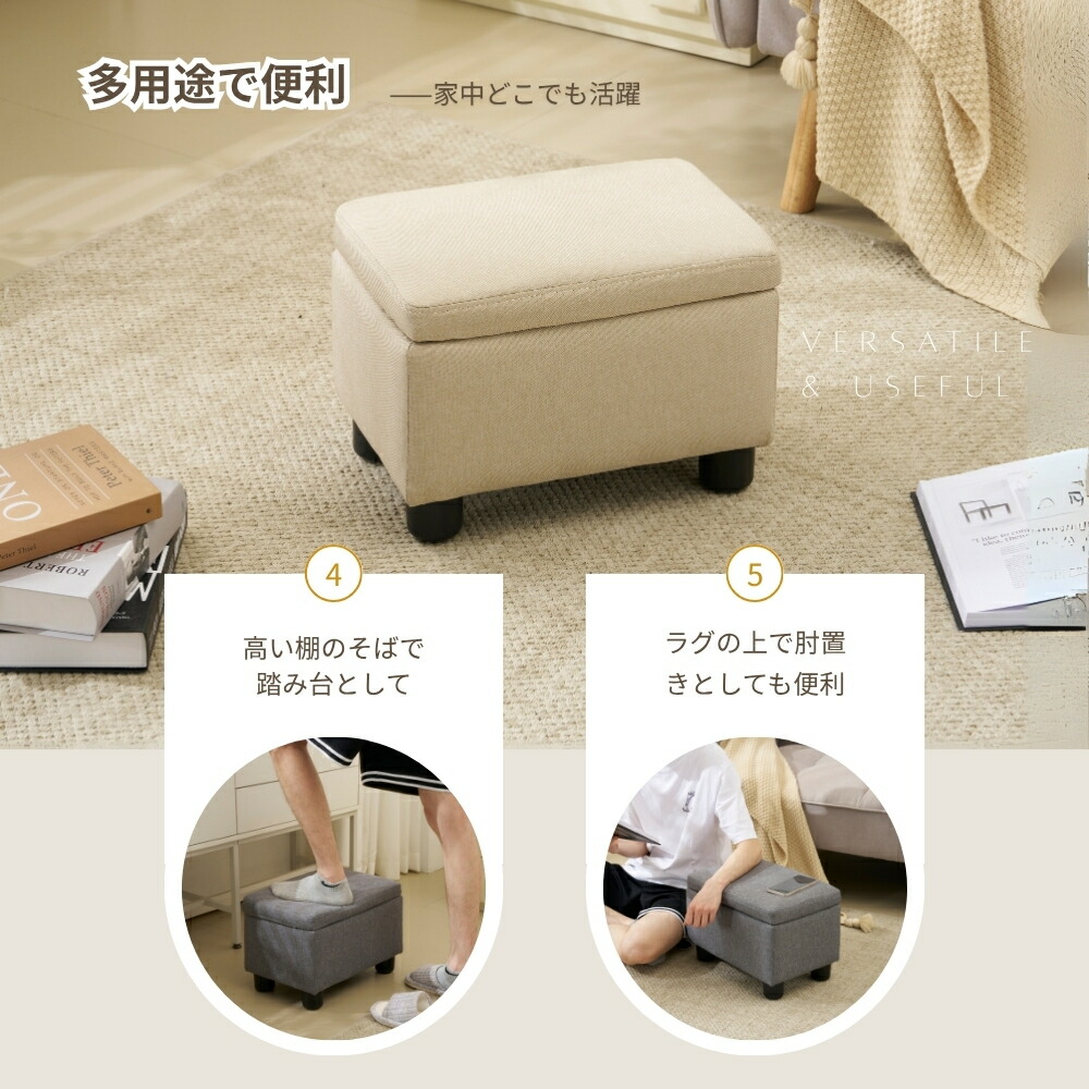 オットマン スツール 収納 1人掛け アイボリー グレー エクルベ-ジュ