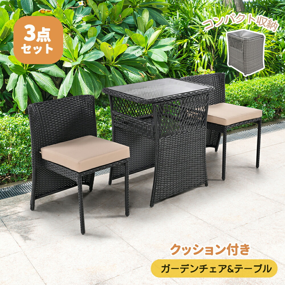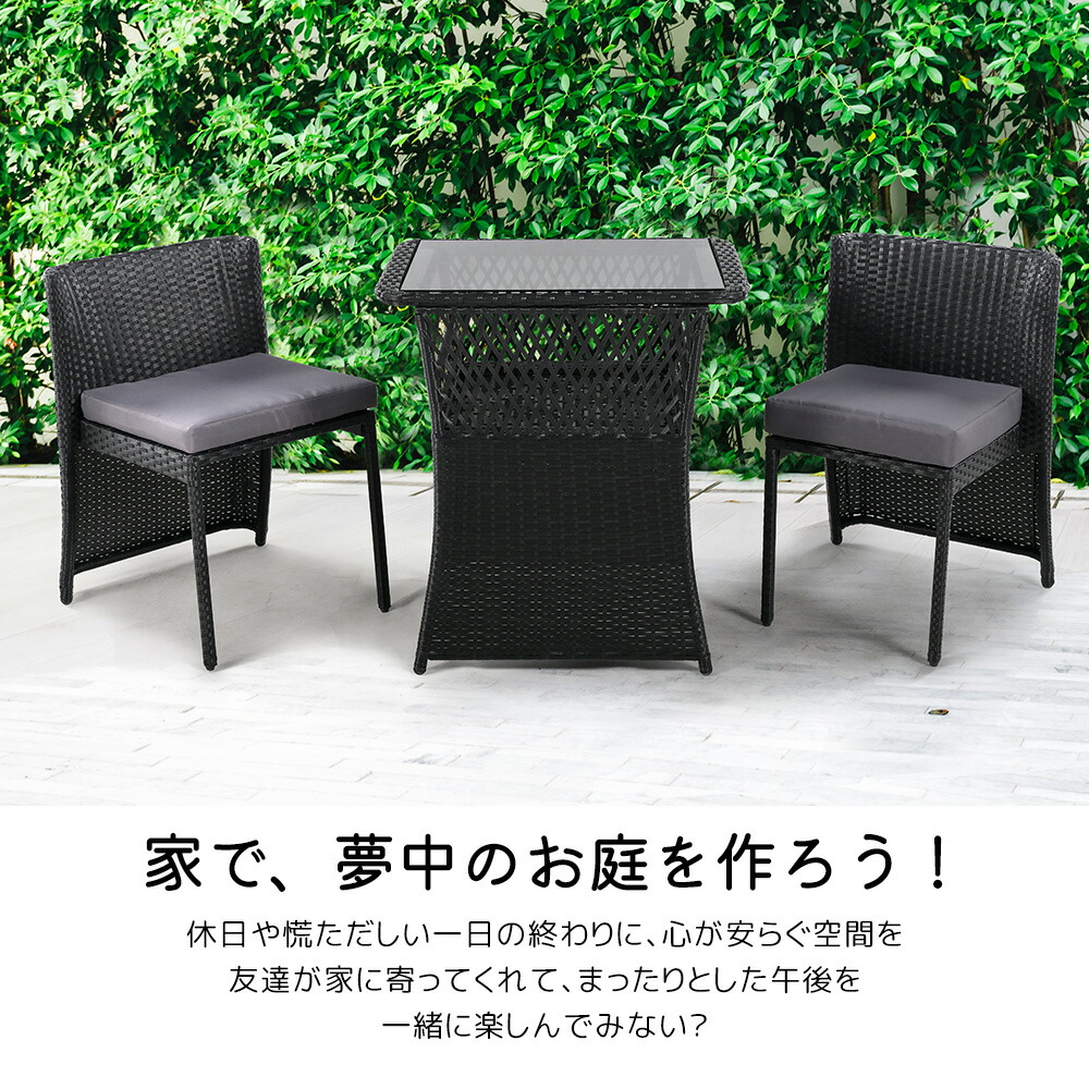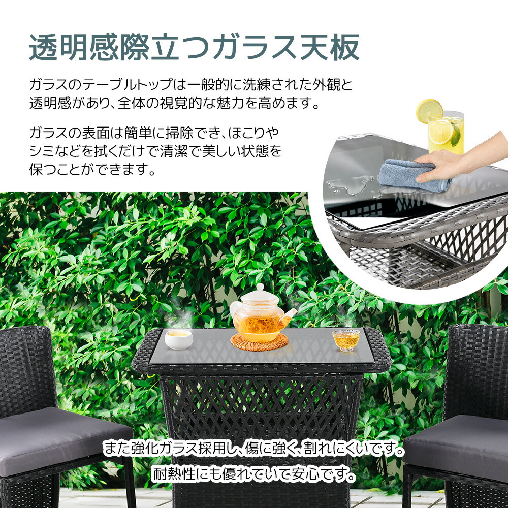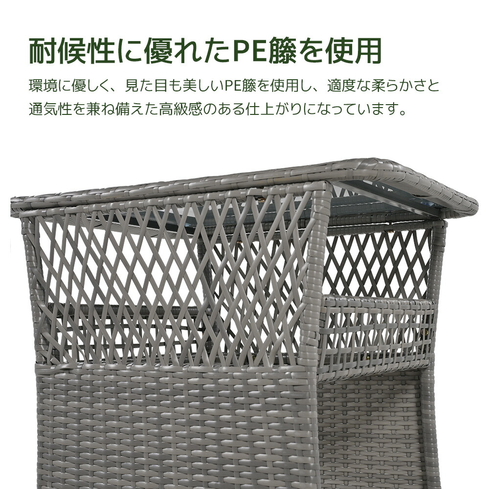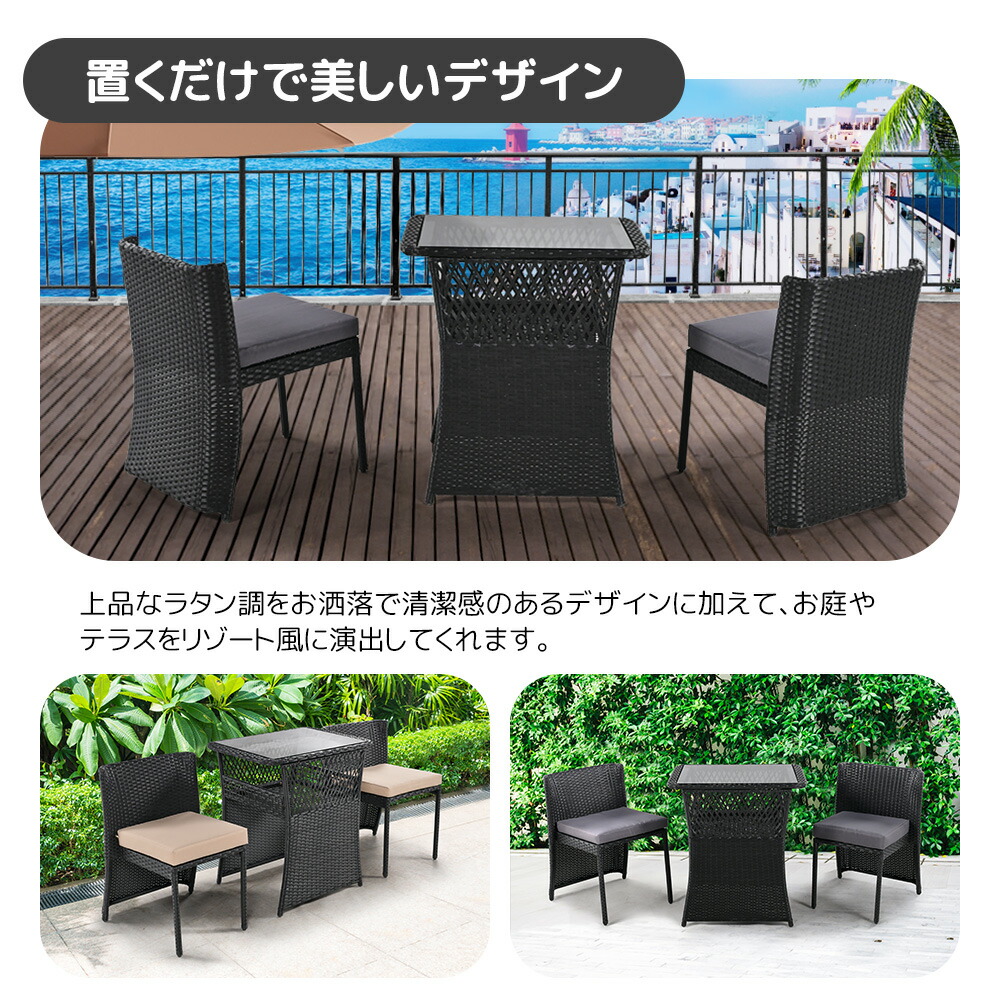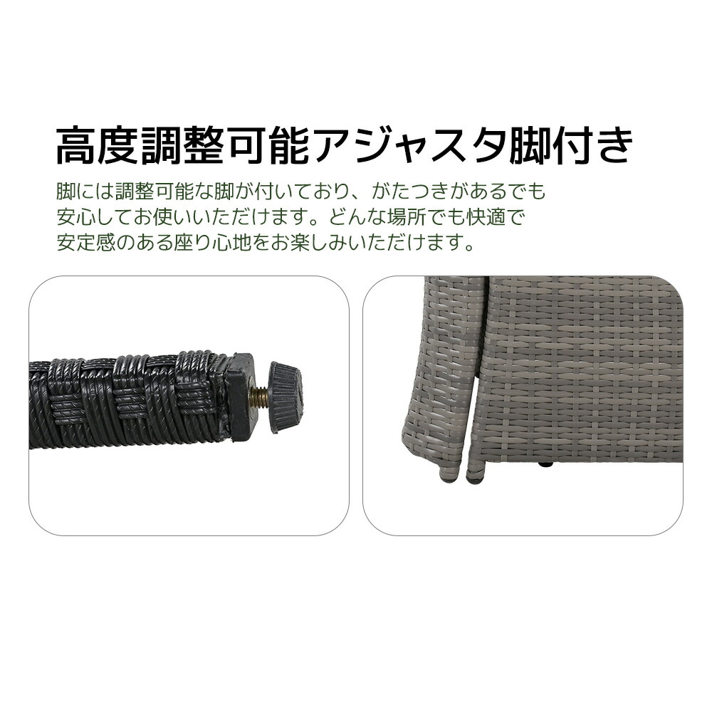 ラタン調 ガーデンファニチャーセット グレー ブラック