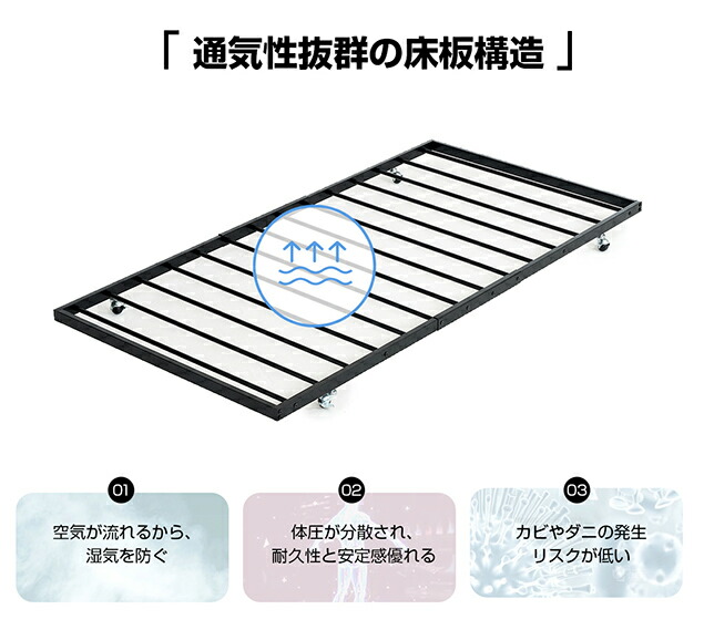 シングルベッド 195*97cm 移動 ホワイト ブラック