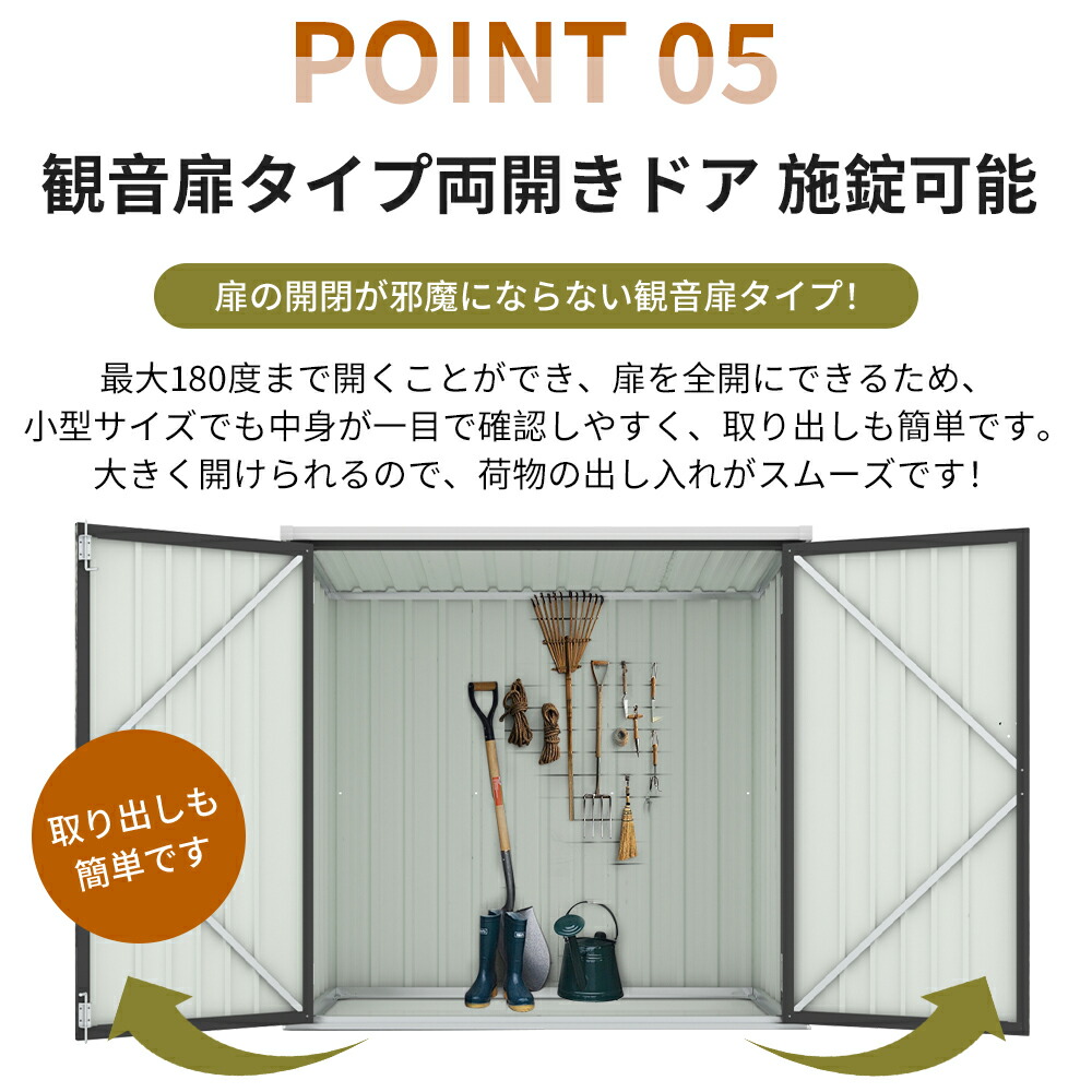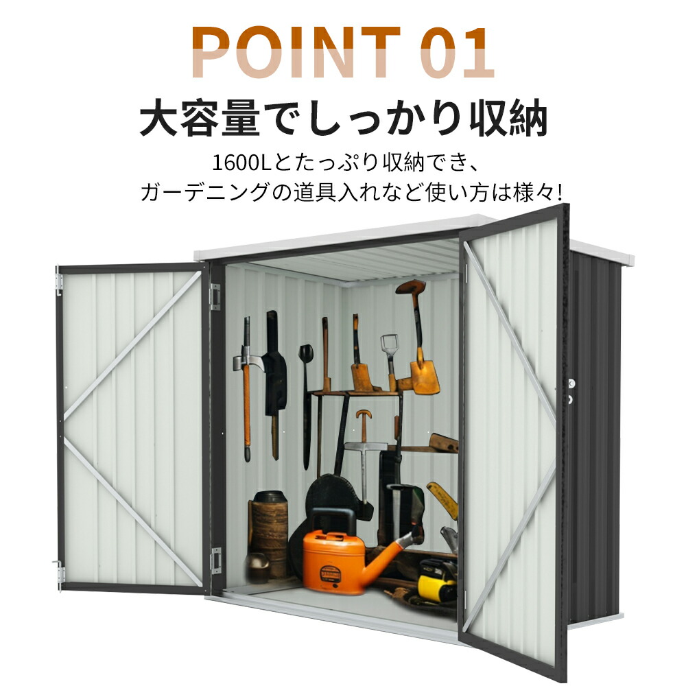 物置 物置き 屋外用 両開きドア 施錠 ブラック 【NEW】グレーxホワイト