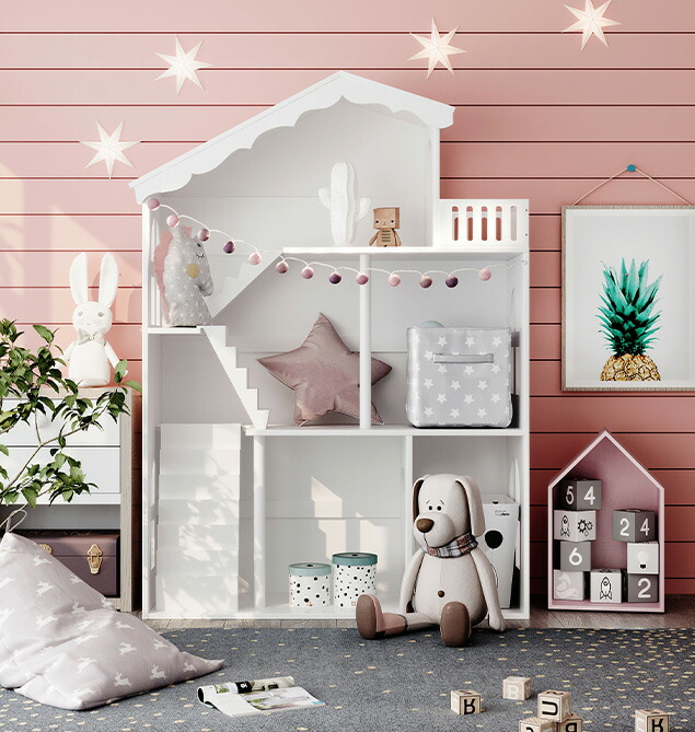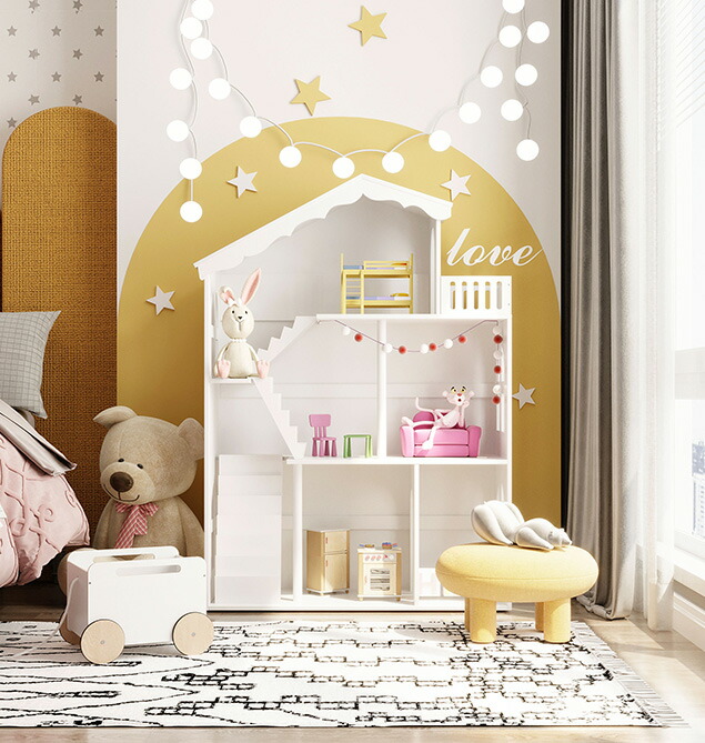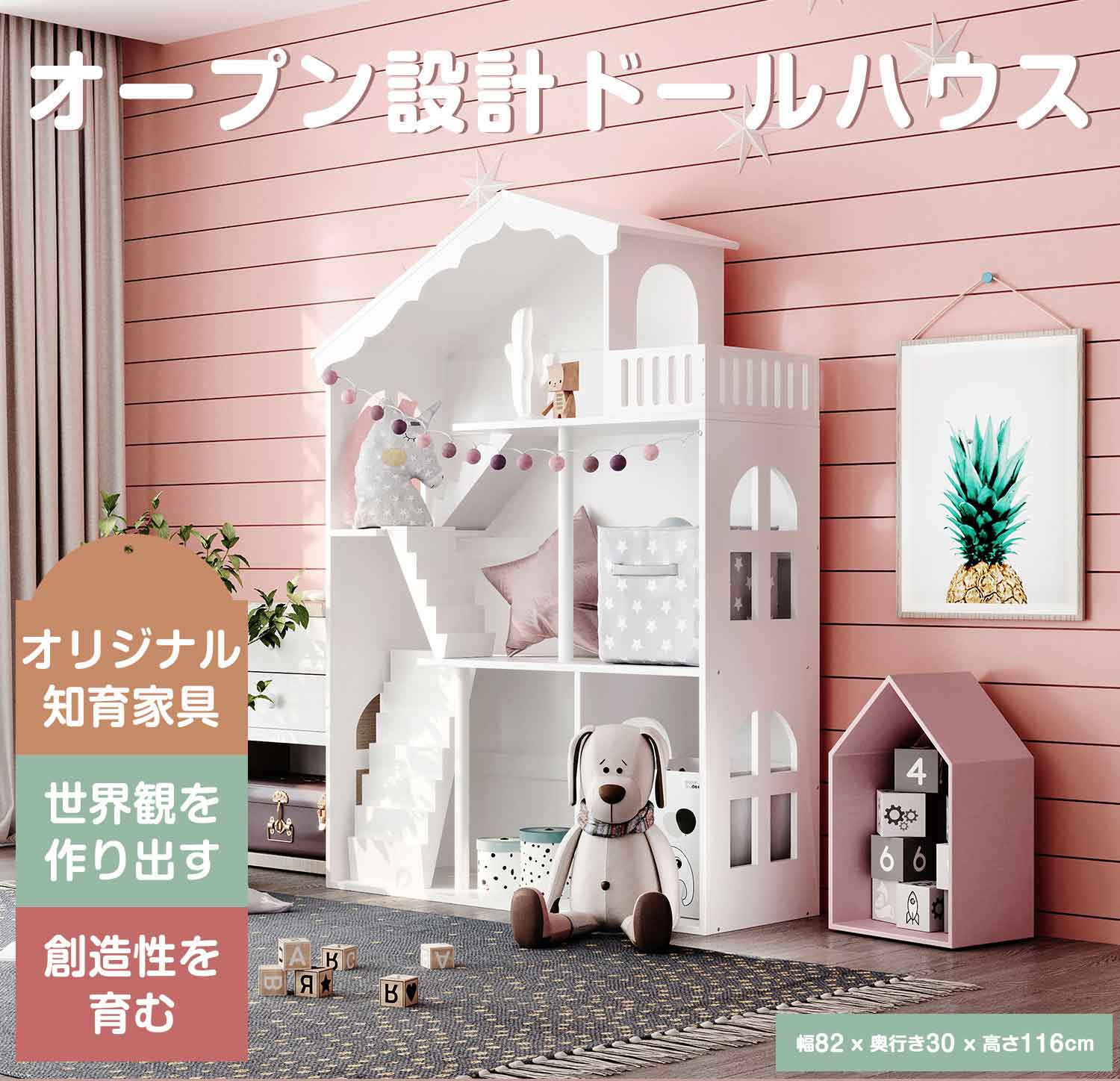 おもちゃ収納 絵本棚 ラック 収納箱 ドールハウス 人形用ハウス 本棚 知育玩具 木製 ままごと ドール ワイドタイプ 組立カンタン 収納 絵本 おもちゃ箱 キッズ 北欧 入学 こども