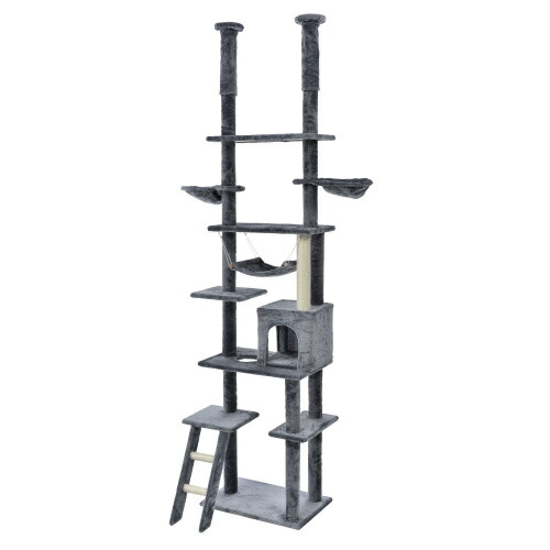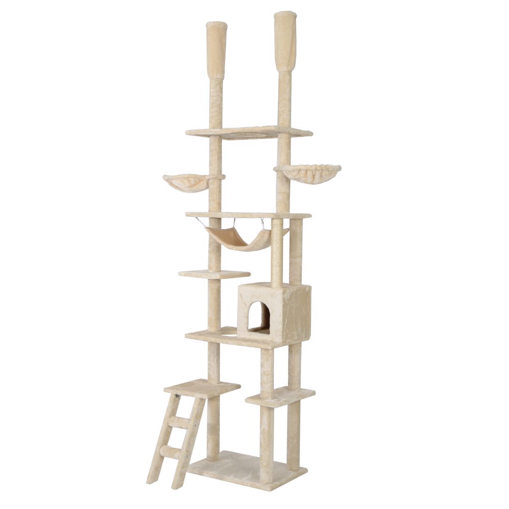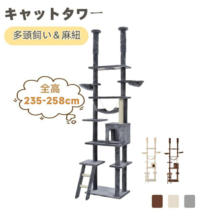 キャットタワー 突っ張り 全高235-258cm スリム 省スペース おしゃれ 爪研ぎ ハンモック付き 階段 つっぱり 猫タワー キャットハウス 隠れ家 ペット用品 cattower 猫ベッド