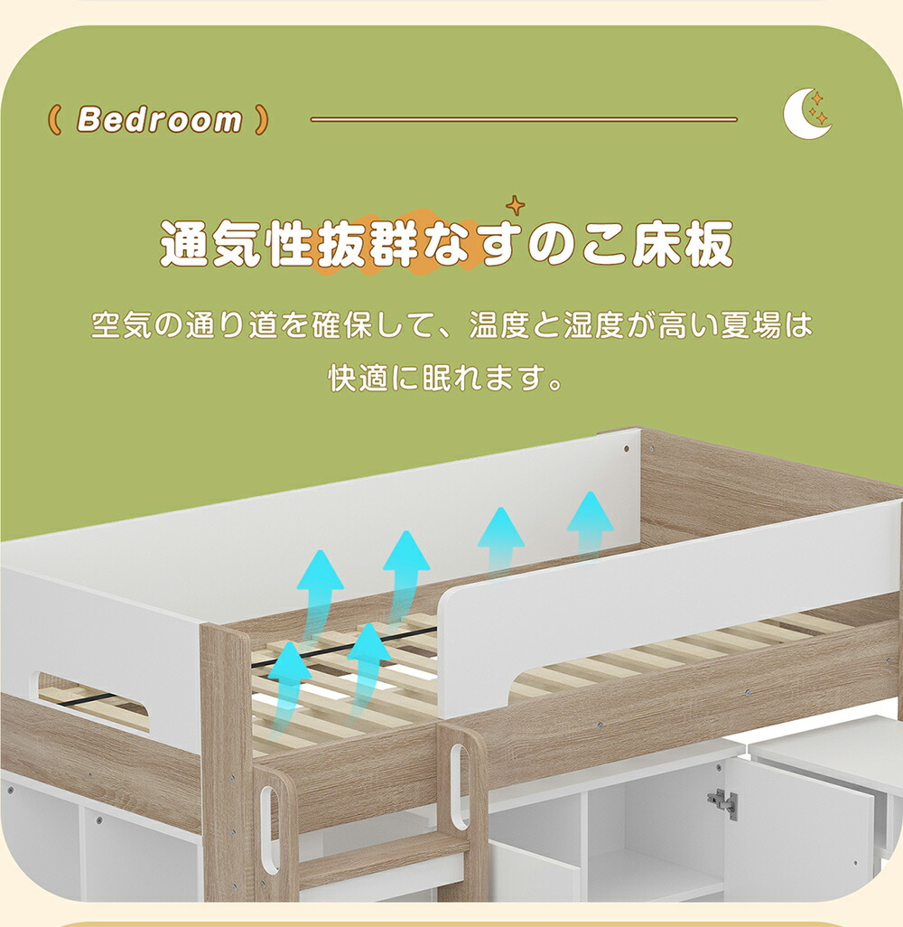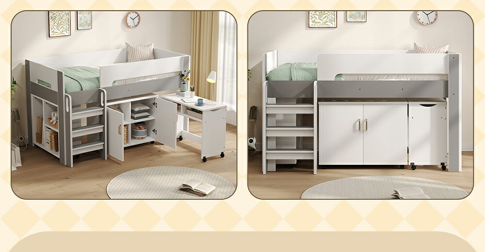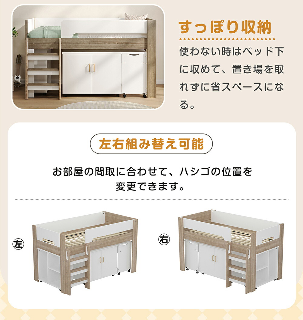 システムベッド ロフトベッド S 木製 ホワイト+グレー ホワイト+ナチュラル