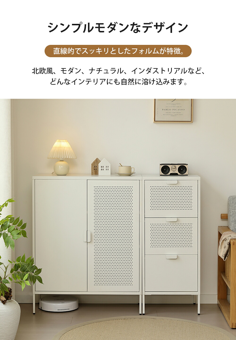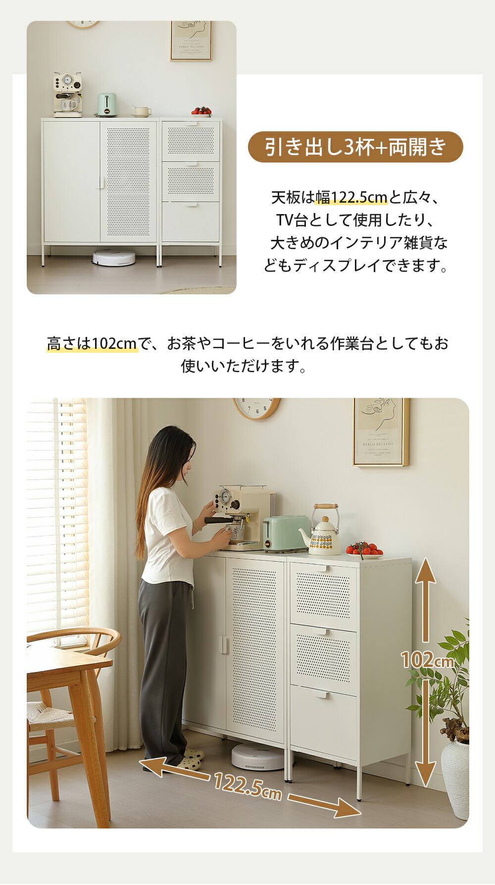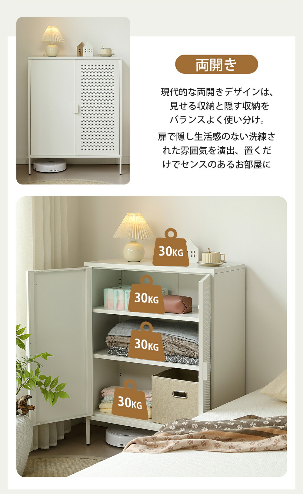 キャビネット スチール製 脚付き 3段