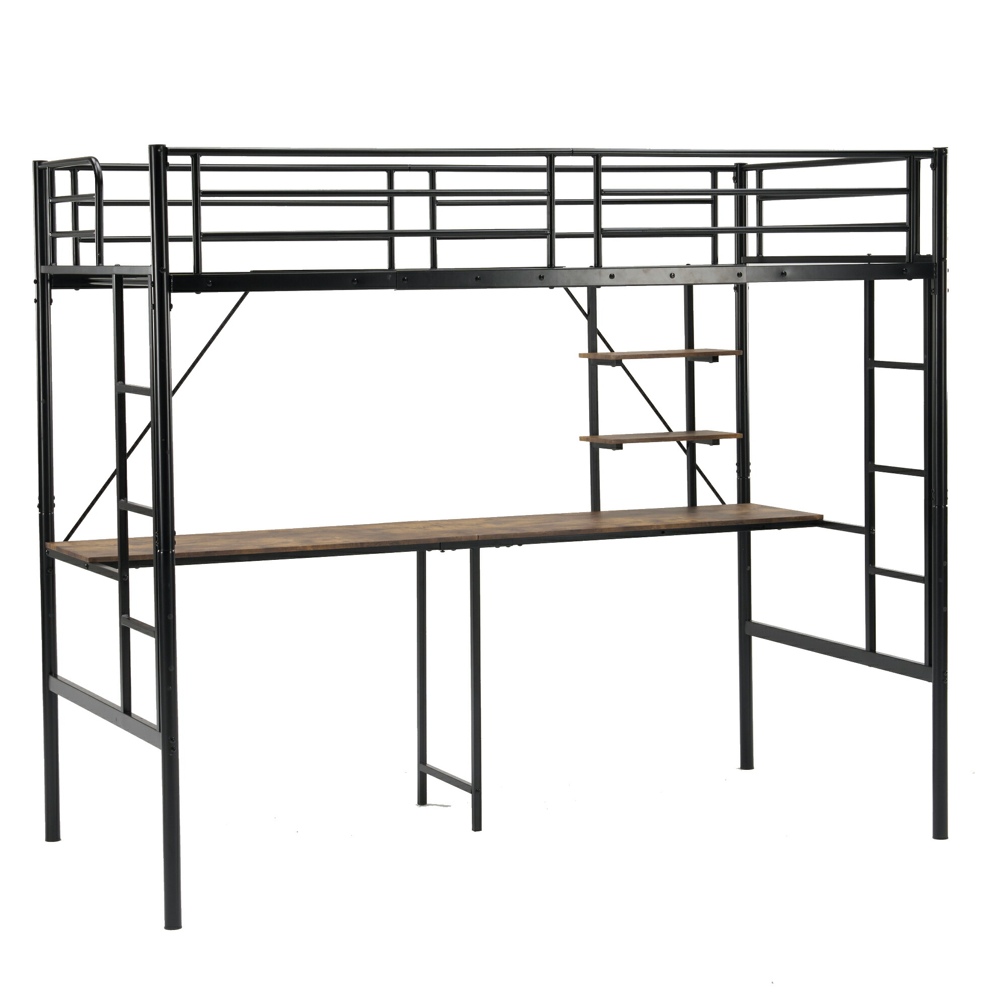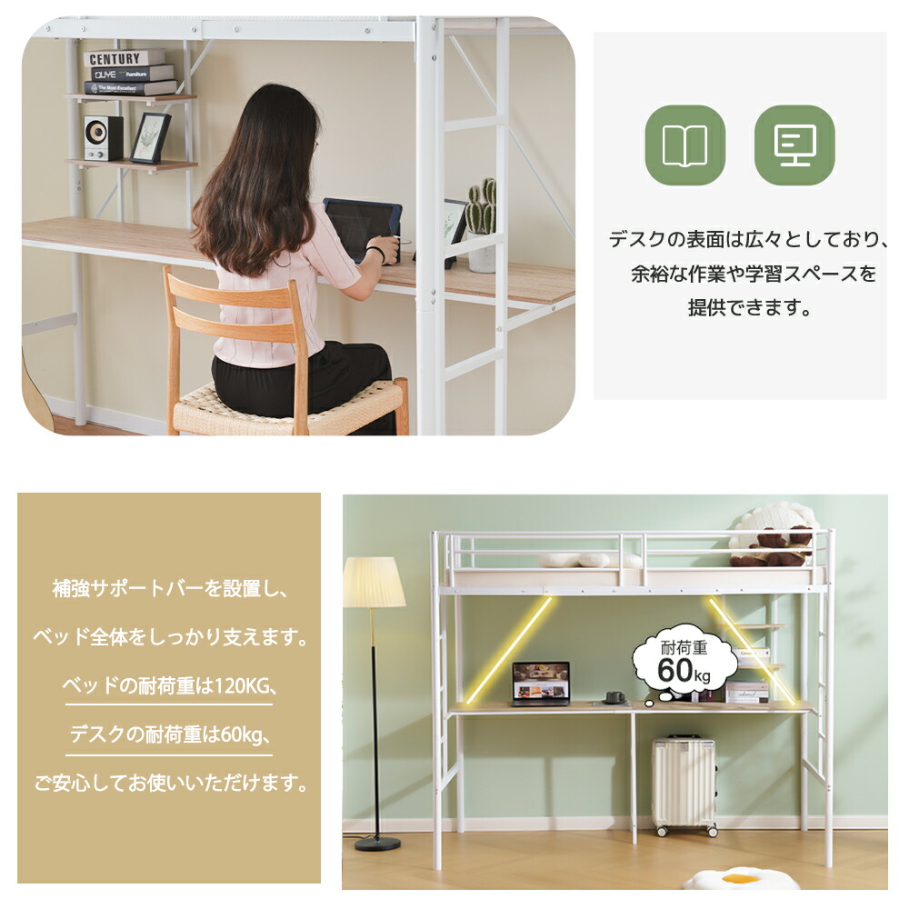 システムベッド デスク付き ラック棚付 ホワイト ブラック