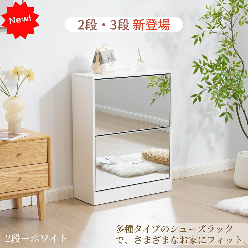シューズボックス 超薄型 ミラー 5段 2段 3段 4段 5段 ホワイト ナチュラル ブラウン