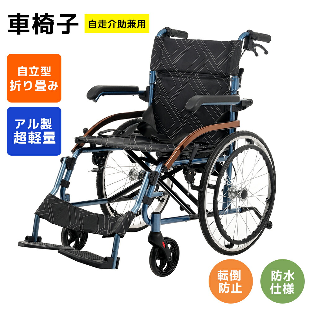 車椅子 アルミ製 軽量 自走式 介助用 コンパクト 折りたたみ 折り畳み 自走介助兼用 四輪 ノーパンクタイヤ 介助ブレーキ付き キャスター付き 介護用品 自立式 軽量車椅子 おしゃれ 介護 福 新品