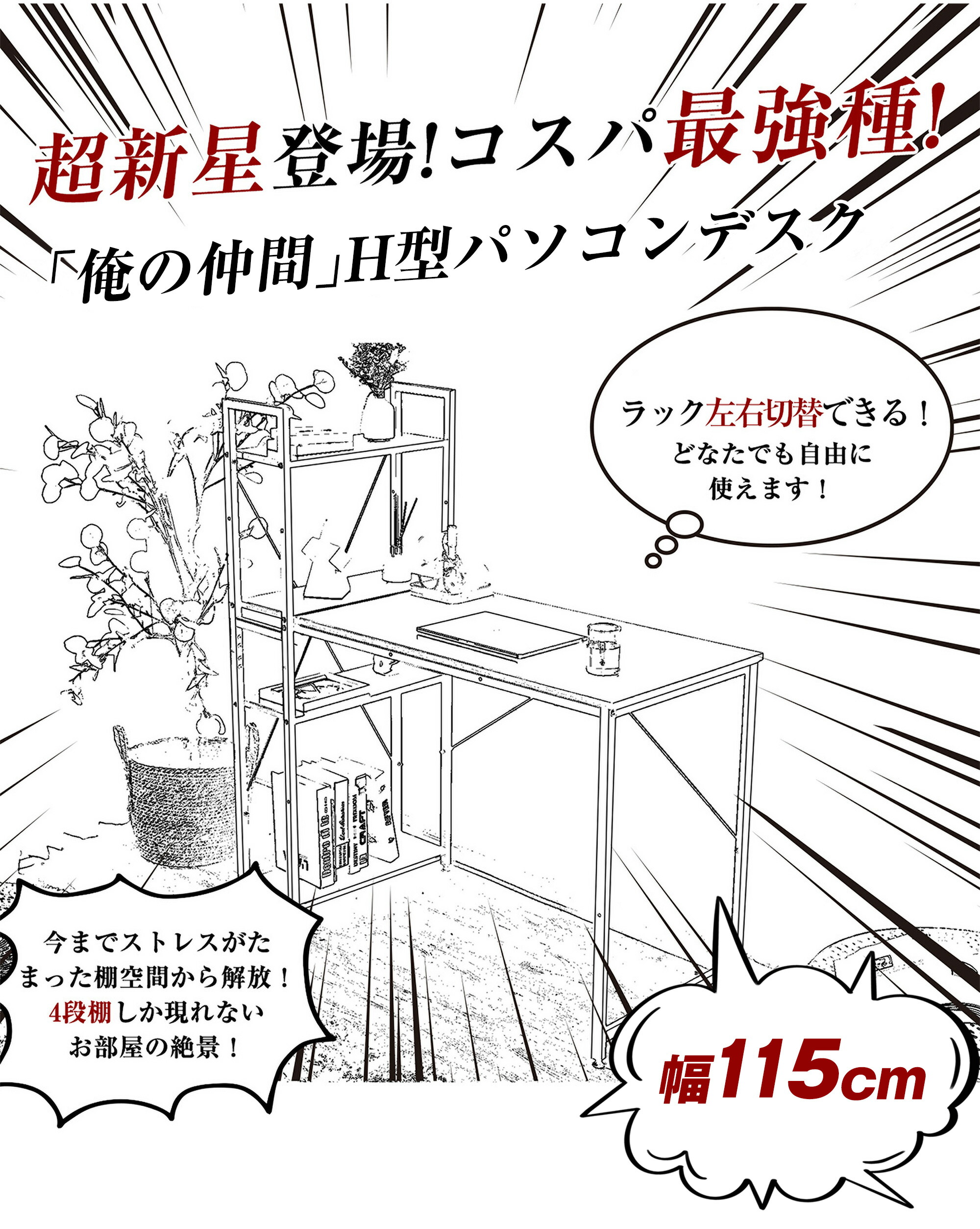 オフィスデスク 分離式H型デスク パソ ナチュラル ホワイト